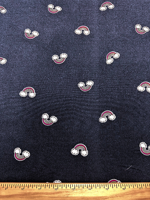 Navy Blue Rainbow Print Double Brushed Jersey Knit Fabric