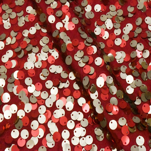 Red/Festive Gold Sequined Knit Fabric