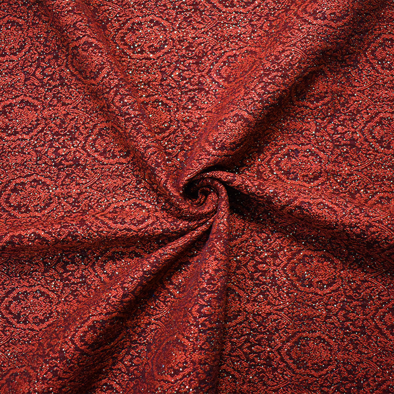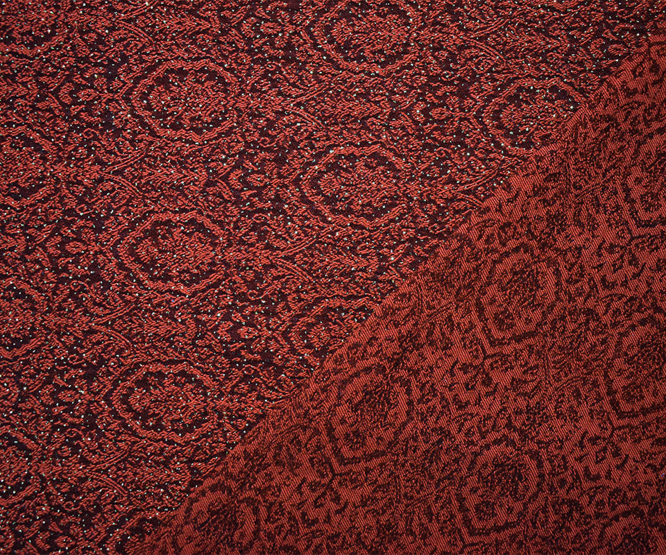 Red-Gold Rayon Blend Baroque Bengaline Jacquard Woven Fabric