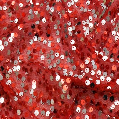 Red/Silver Semi-Sheer Sequined Mesh Tulle Fabric