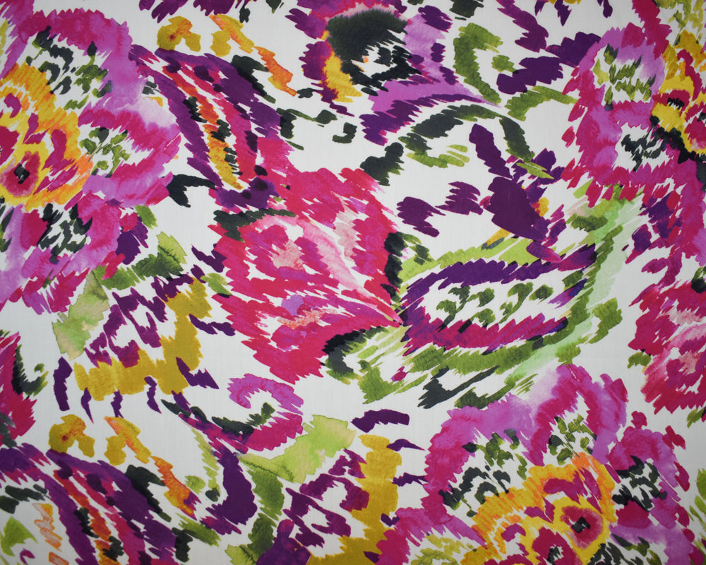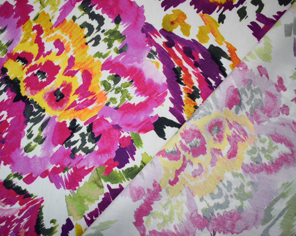Fuchsia-Purple-Multi Cotton Abstract Floral Printed Broadcloth Woven Fabric