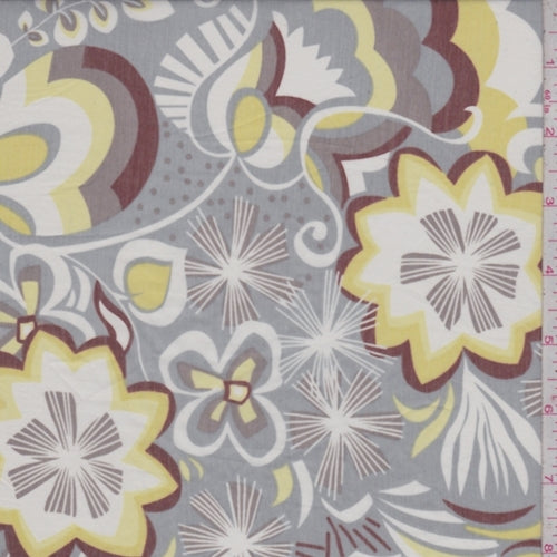 2 YD PC-Sterling/Yellow Floral Print Silk Voile Fabric