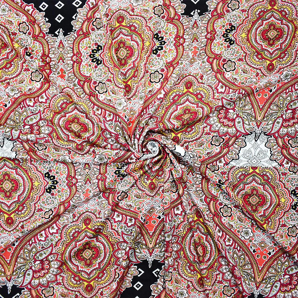 4 YD PC-Orange-Black-Multi Cotton Stretch Spandex Moroccan Printed Jersey Knit Fabric