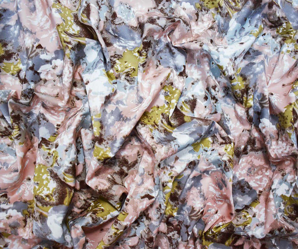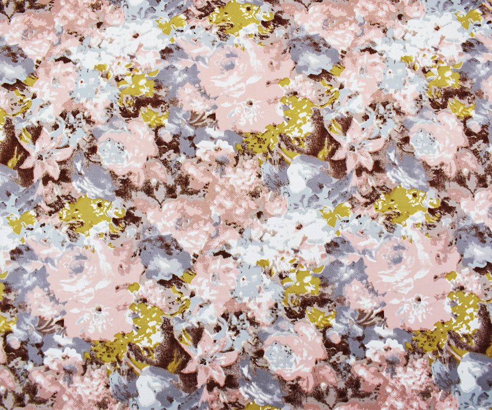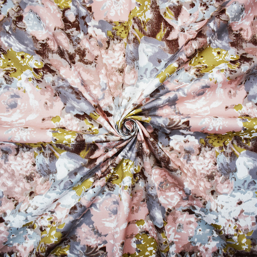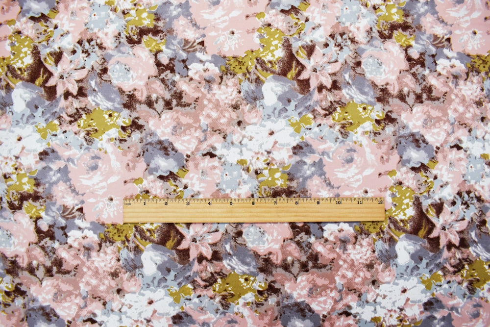 Light Pink-Multi Floral Printed Stretch Spandex Twill Sateen Woven Fabric