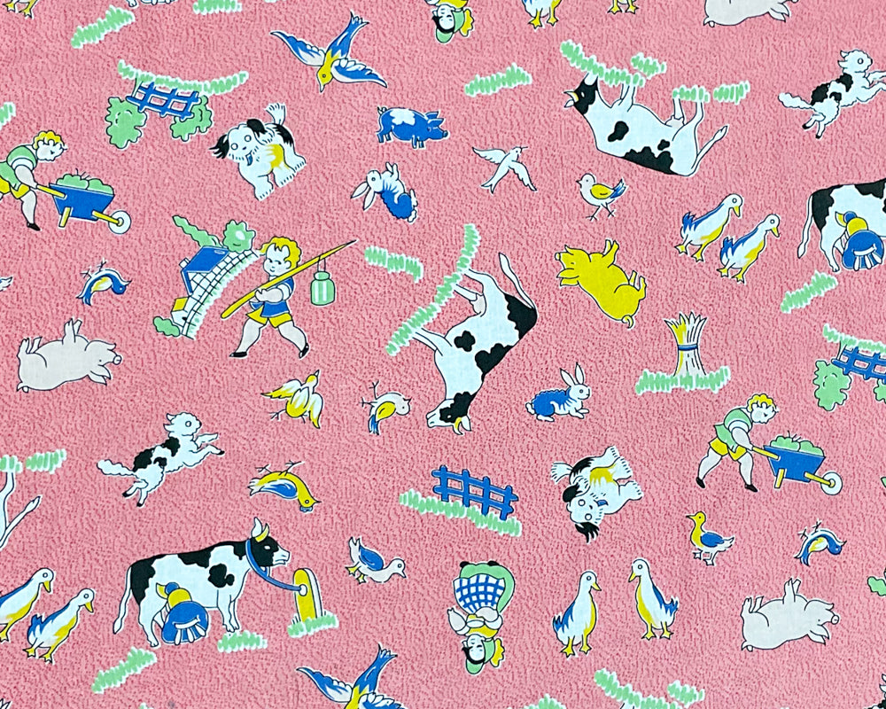 Pink-White-Multi Cotton Novelty Printed Plain Woven Fabric