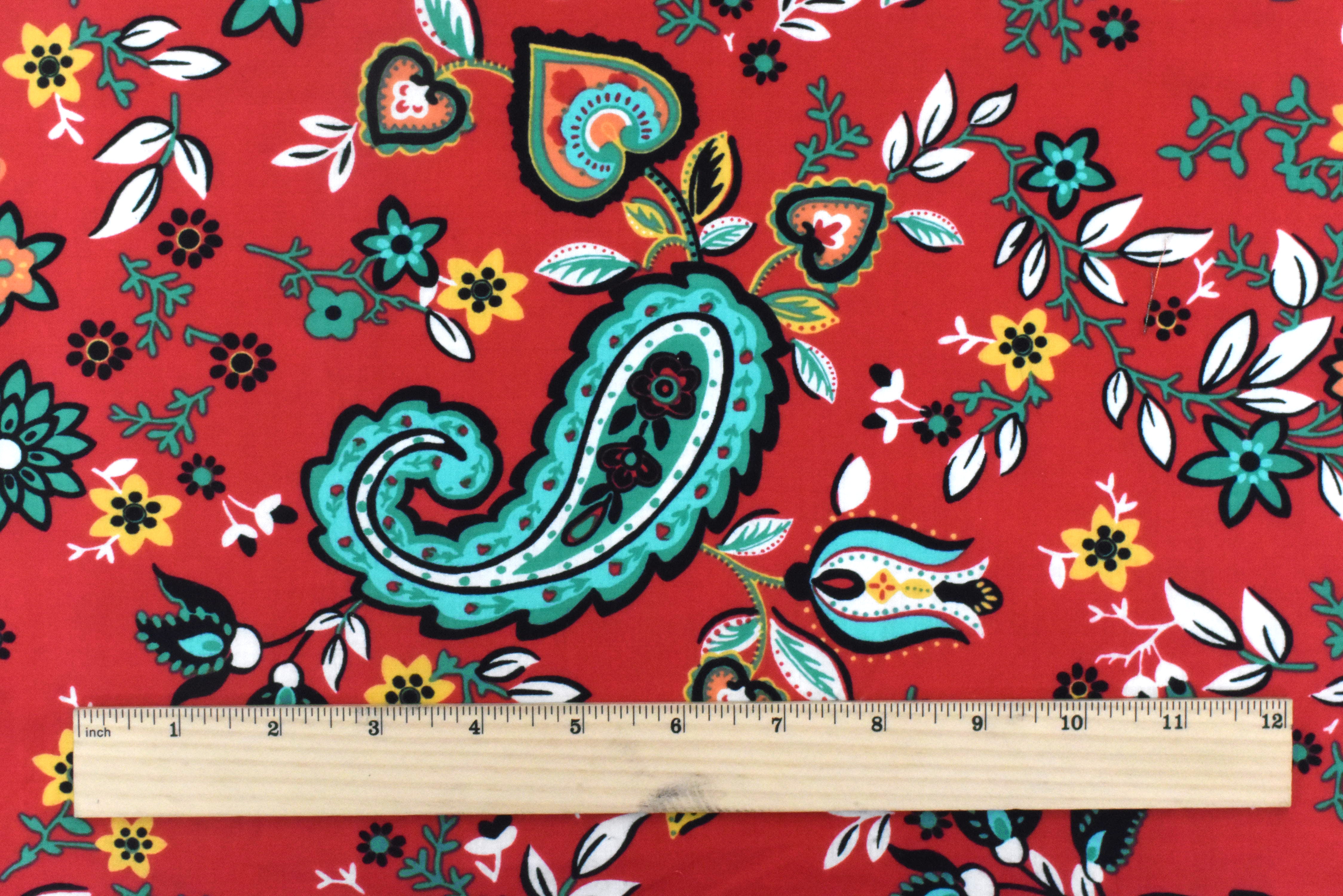 Red-Teal-Multi Cotton Floral Printed Batiste Woven Fabric