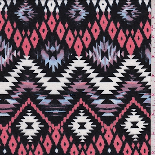 Black/Coral Southwest Print Jersey Knit Fabric