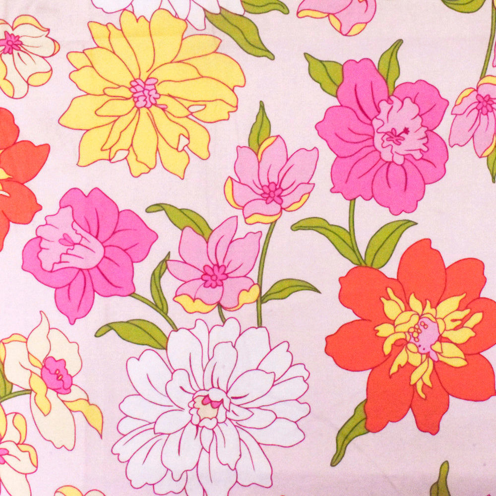 Rice Pink-Orange-Multi Floral Print Stretch Cotton Poplin Woven Fabric
