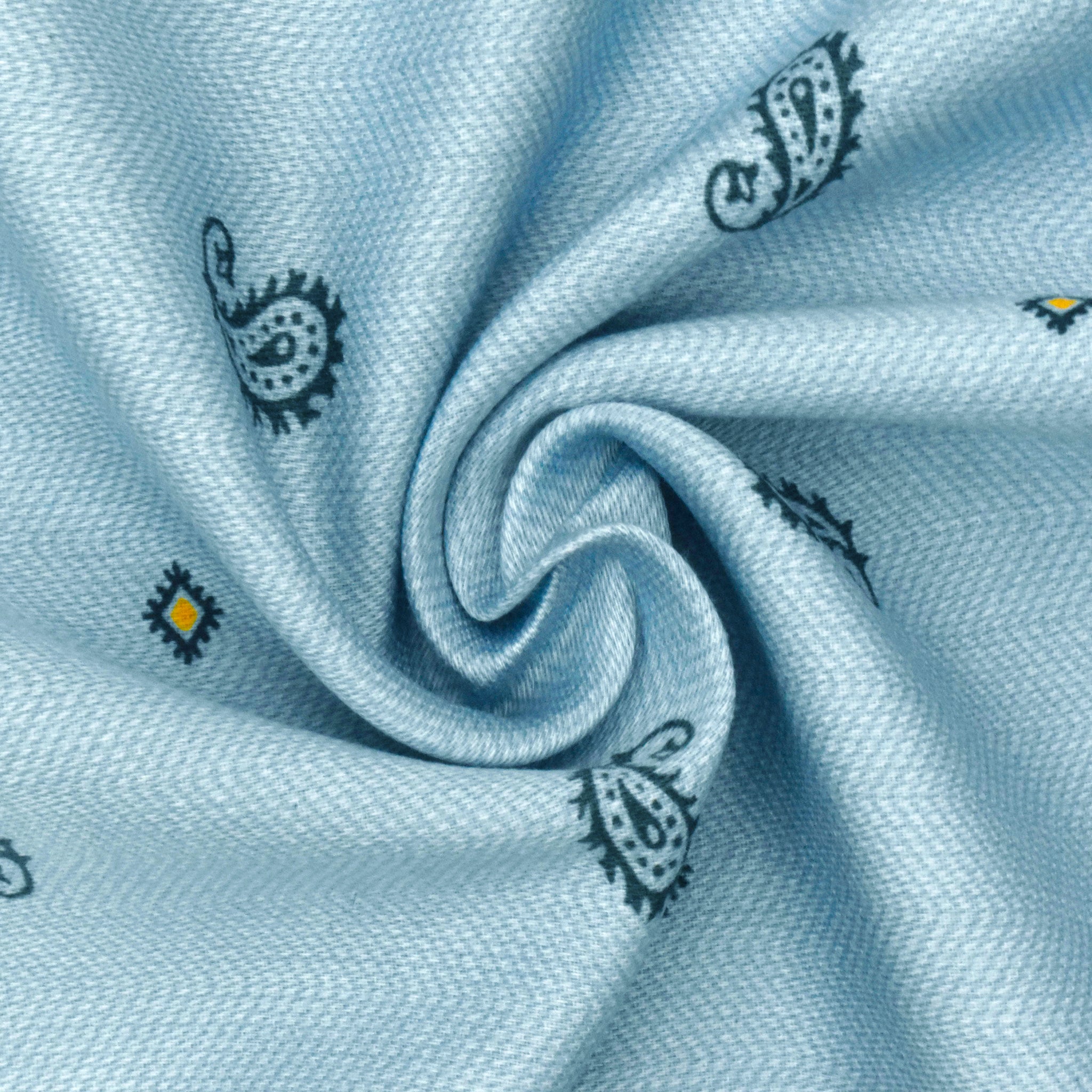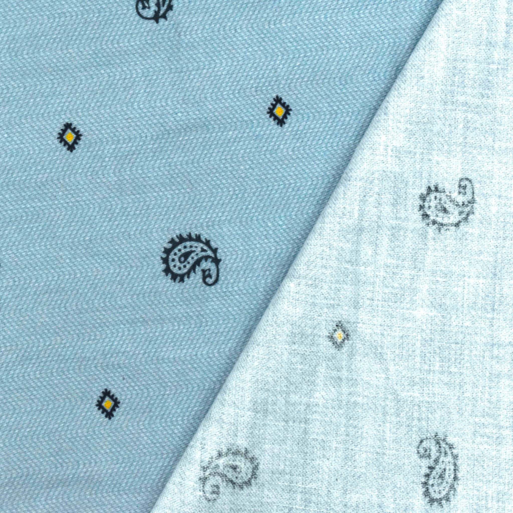 Light Blue-Multi Paisley Printed Cotton Twill Woven Shirting