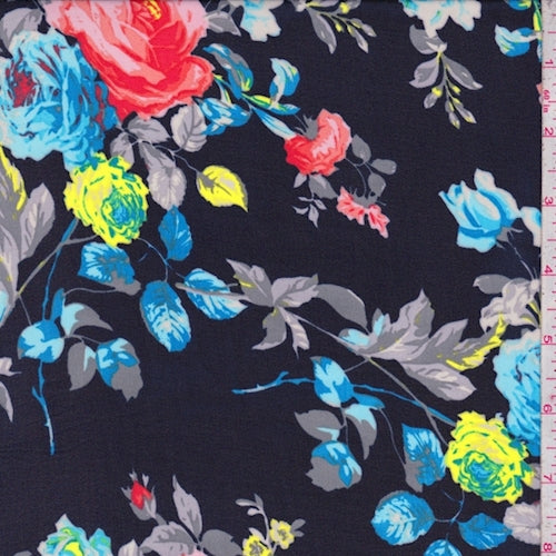 Navy/Salmon/Aqua Floral Crepe Georgette Fabric