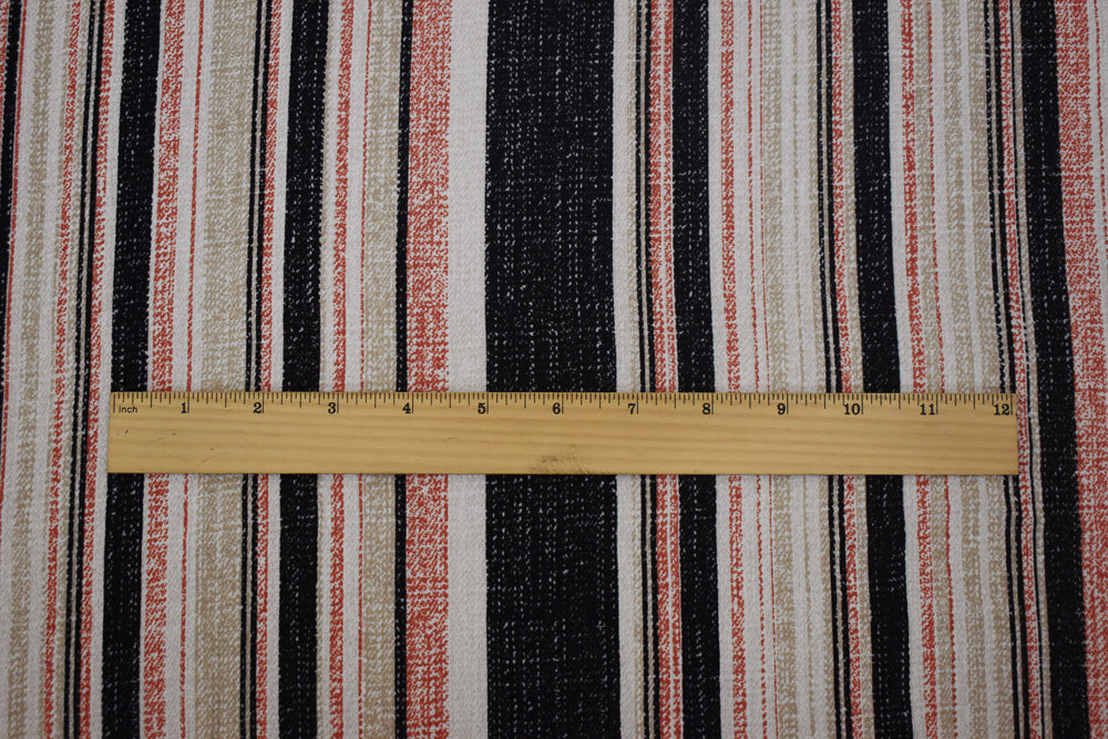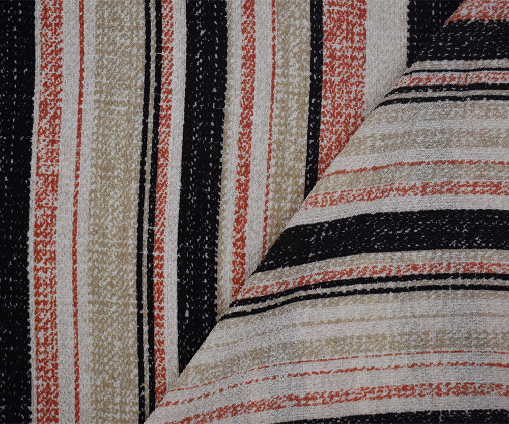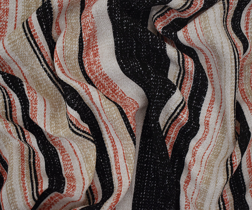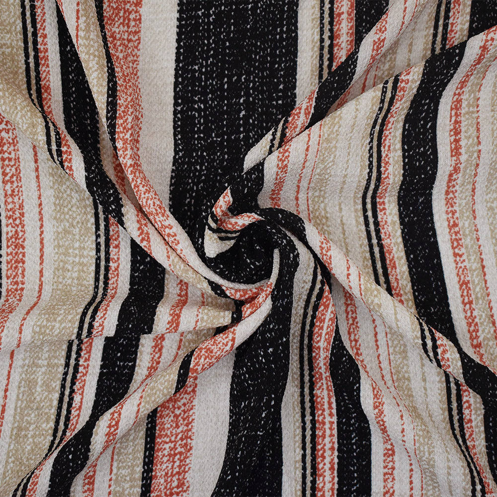 Orange-Black-Beige Texture Stripe Printed Poly Crepe Georgette Woven Fabric