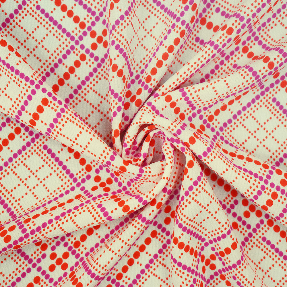 -Geometry dots printed stretch polyester spandex ghost crepe woven fabric