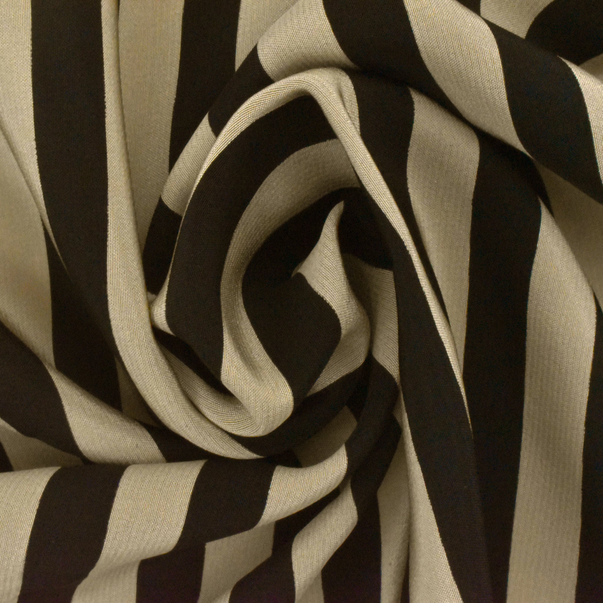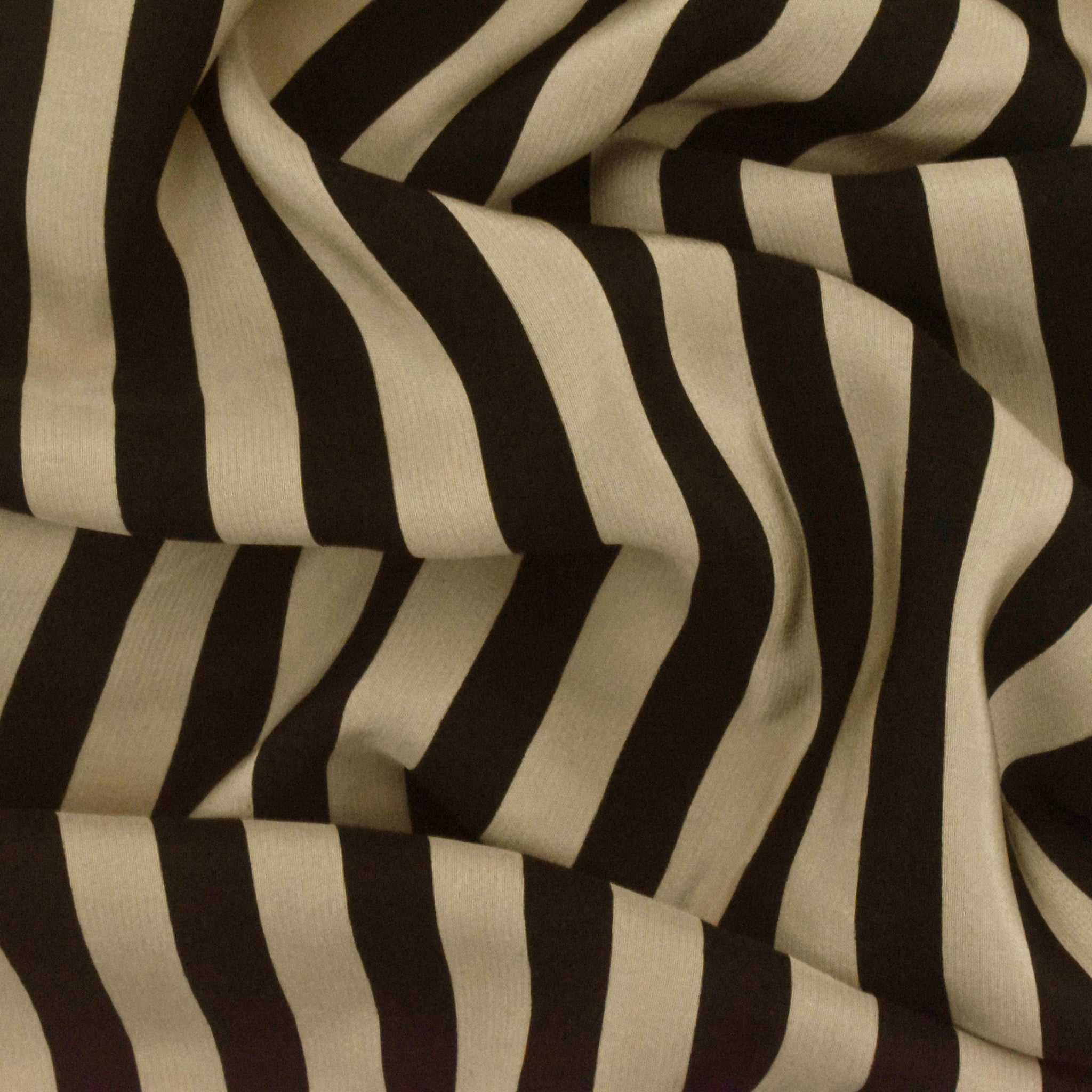 Taupe Beige-Black Stripe Printed Silk Crepe De Chine Woven Fabric