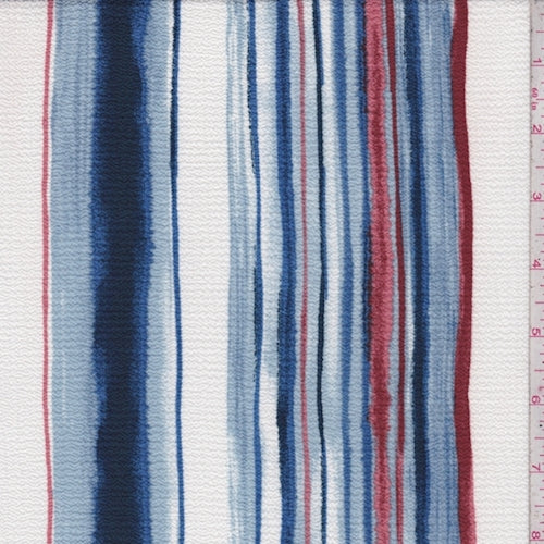 White/Navy/Powder Stripe Crinkled Crepe Fabric