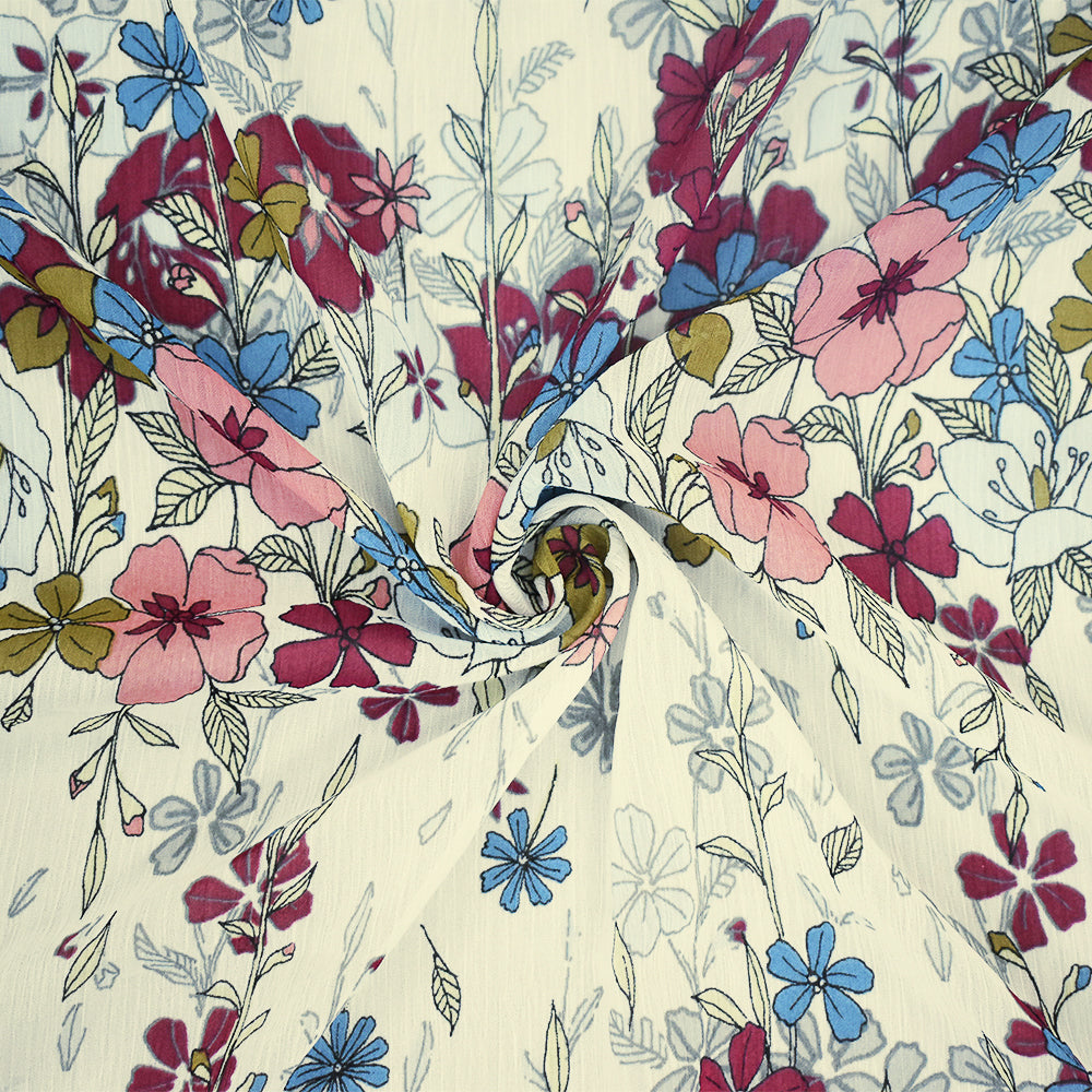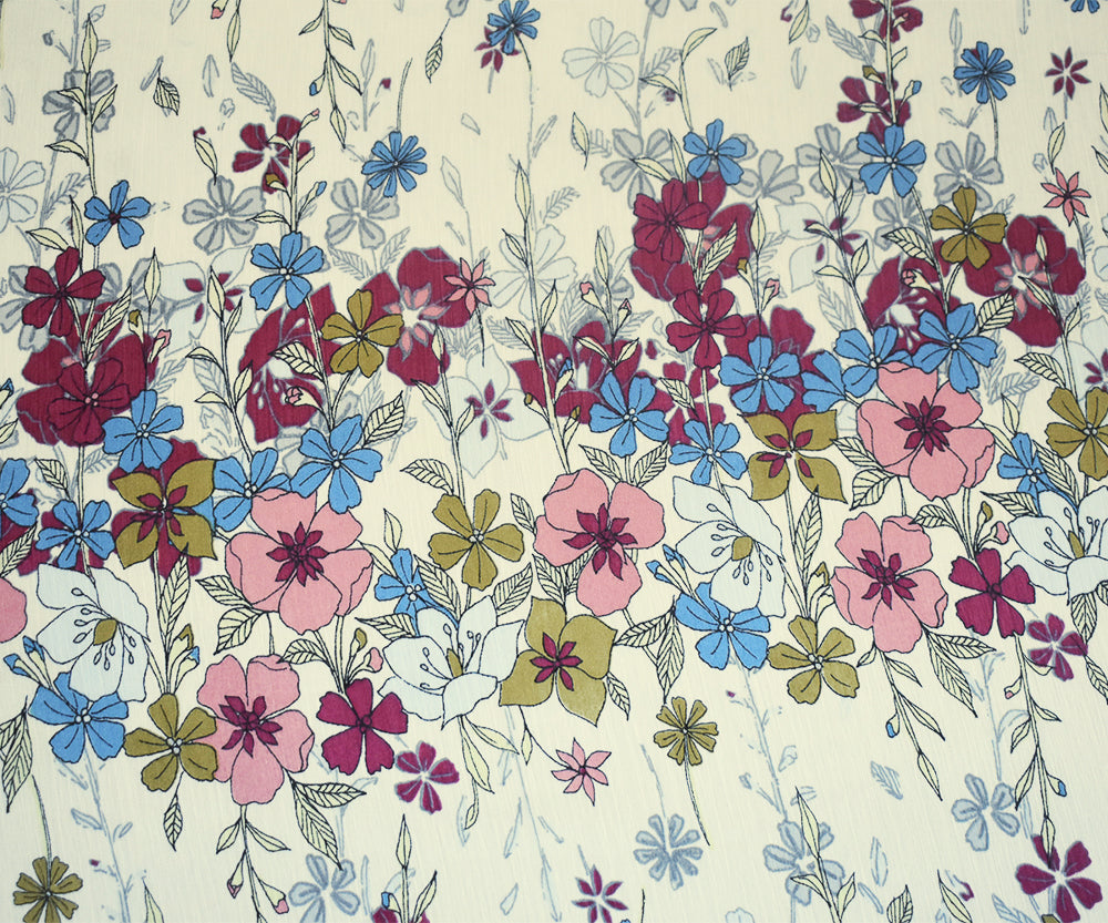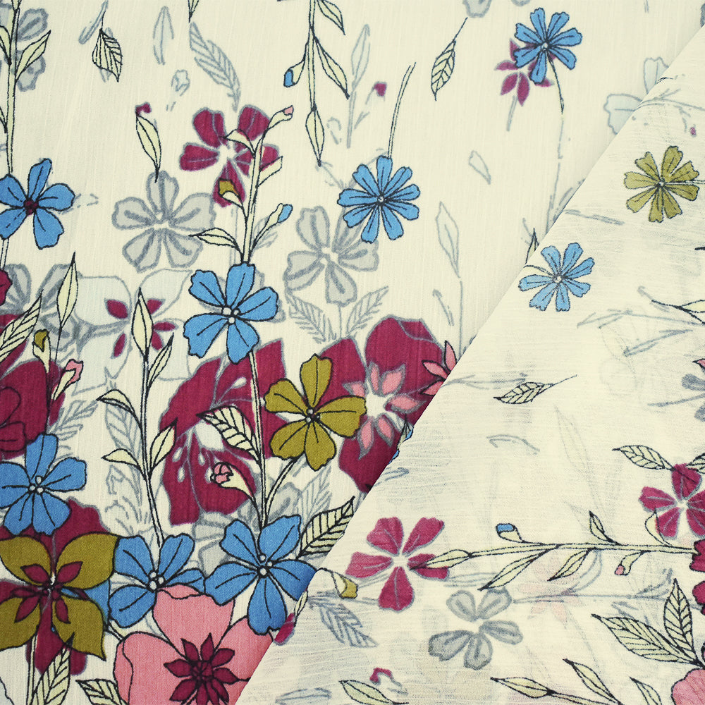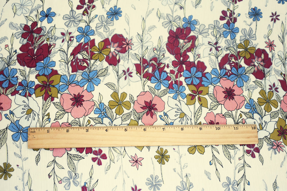 Ivory-Pink-Multi Floral Printed Poly Yoryu Chiffon Woven Fabric