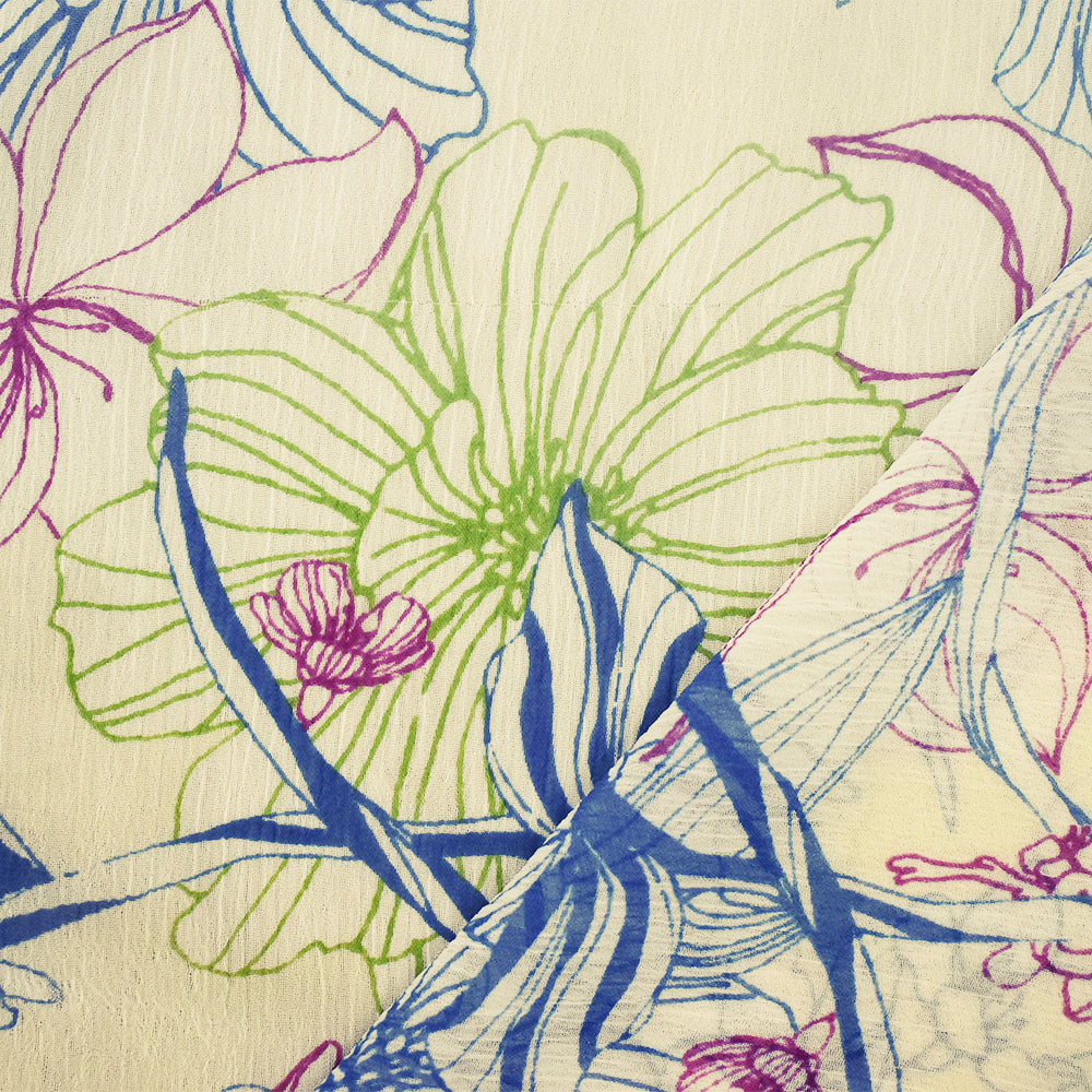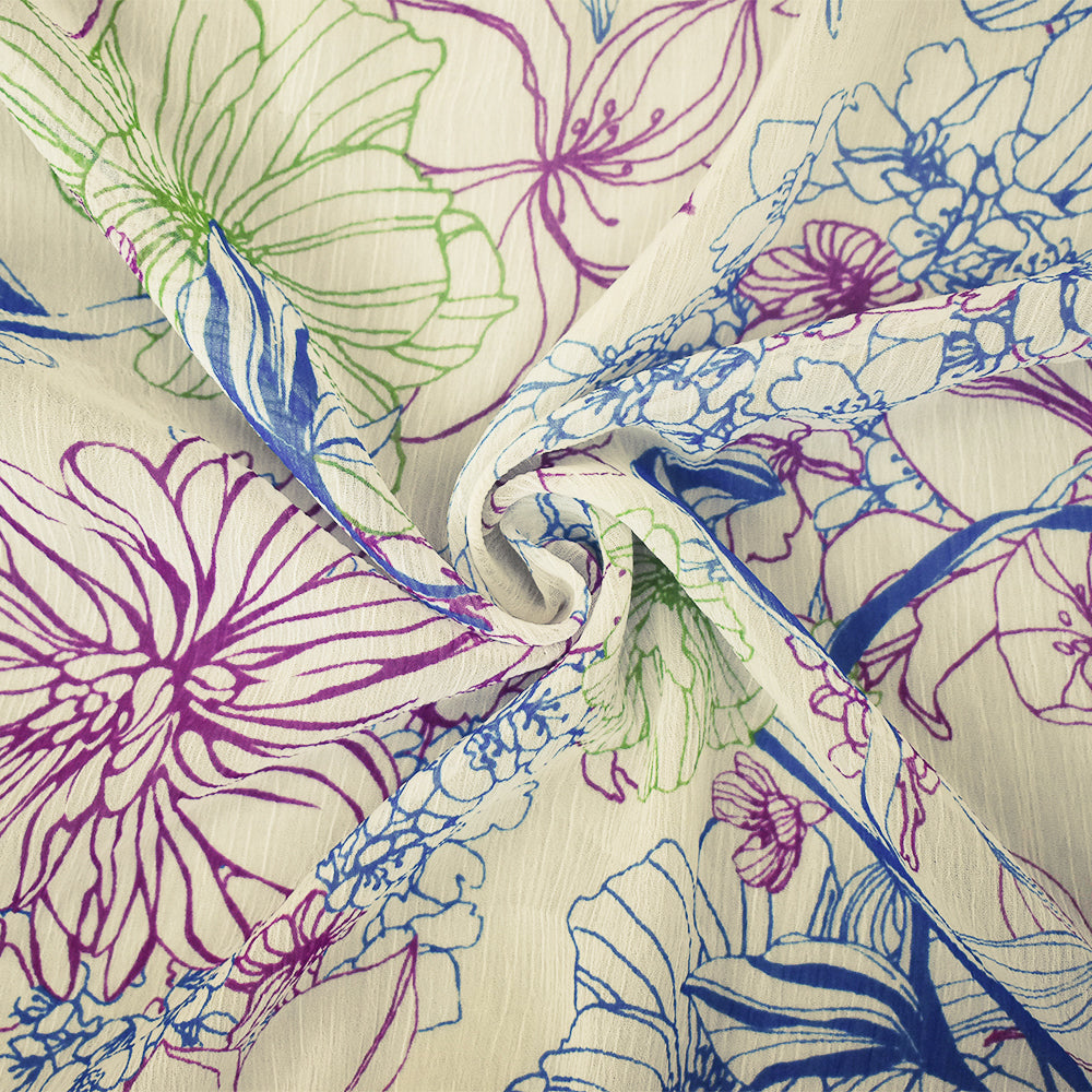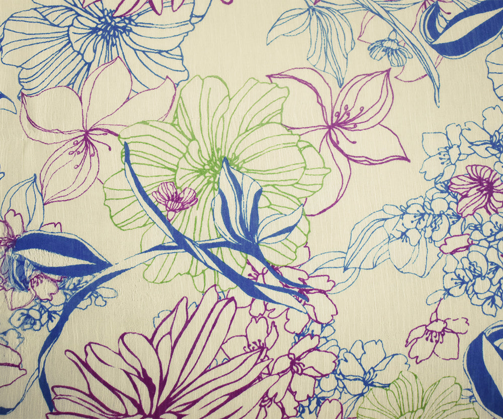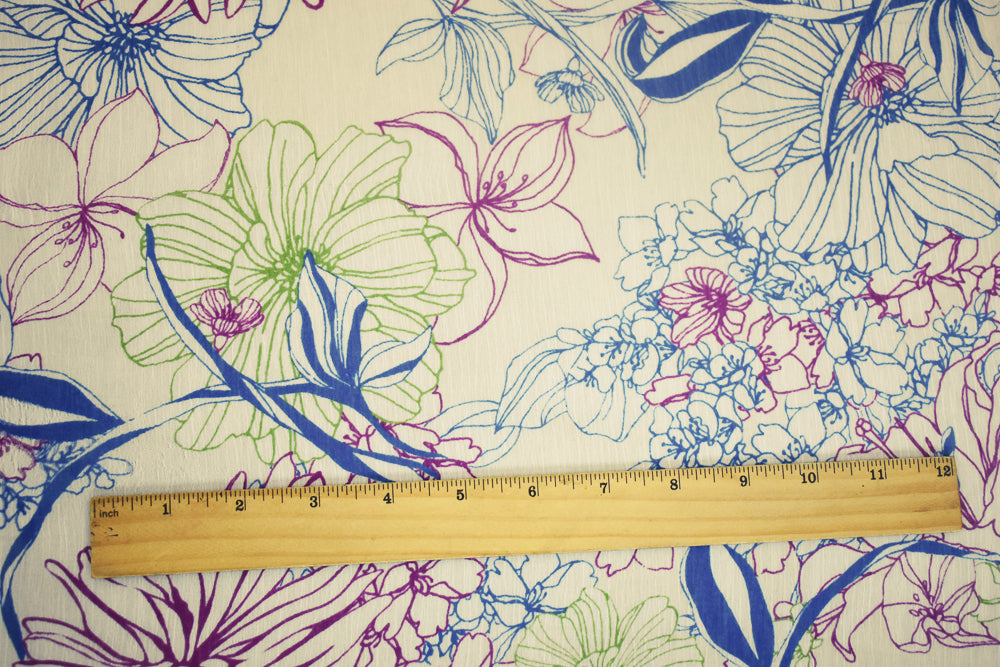 Ivory-Purple-Multi Floral Printed Poly Yoryu Chiffon Woven Fabric