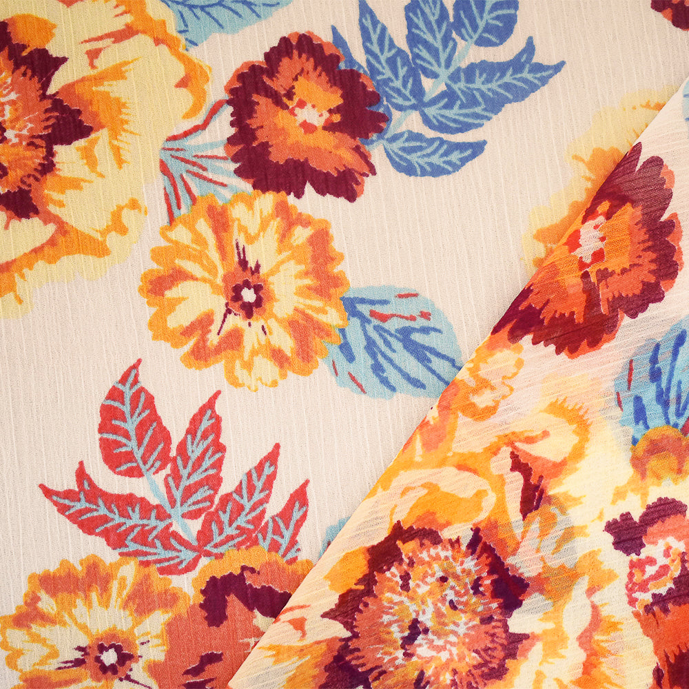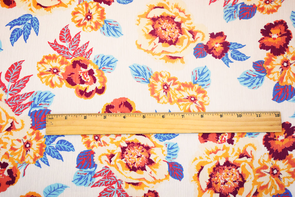 Ivory-Yellow-Multi Floral Printed Poly Yoryu Chiffon Woven Fabric