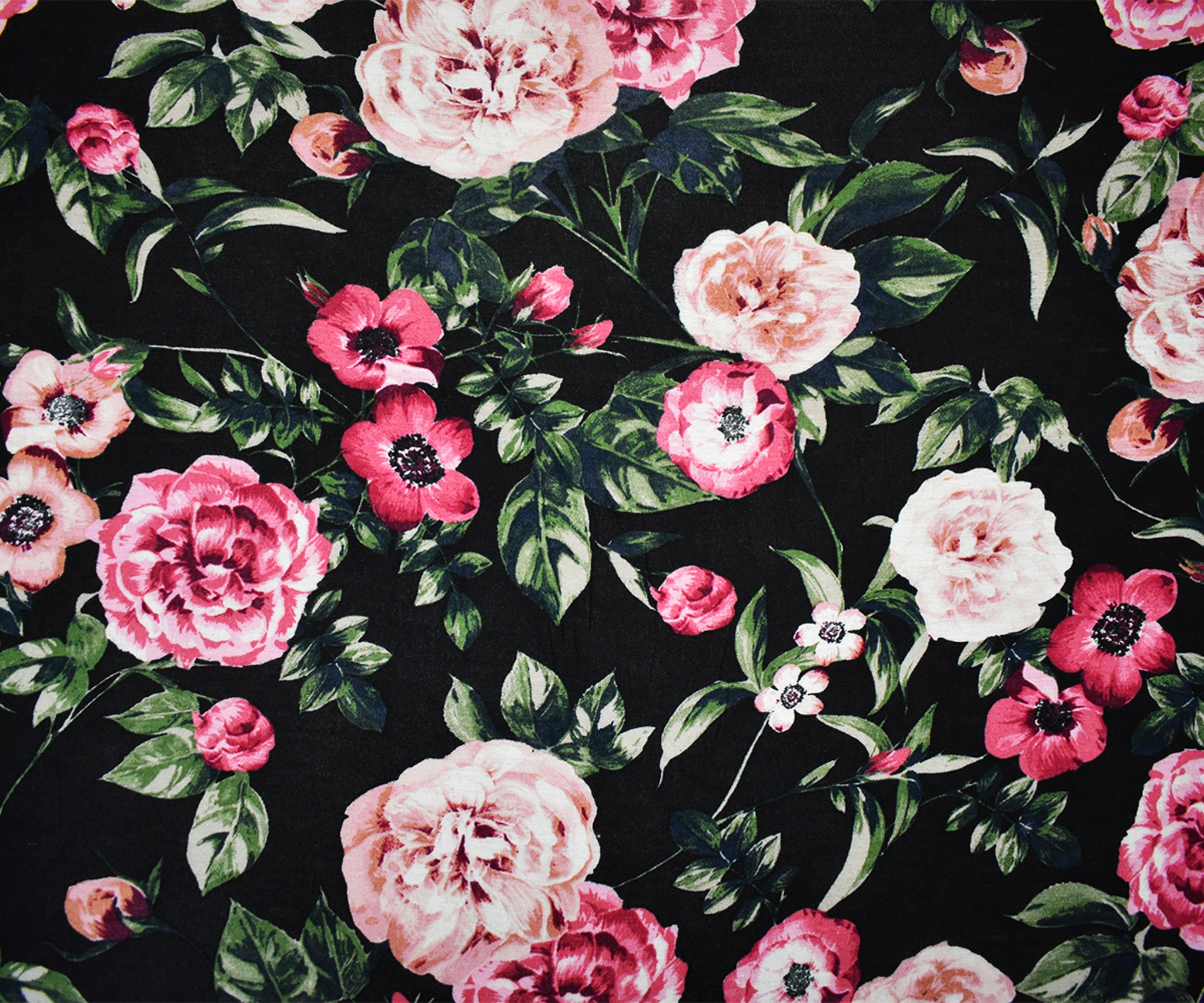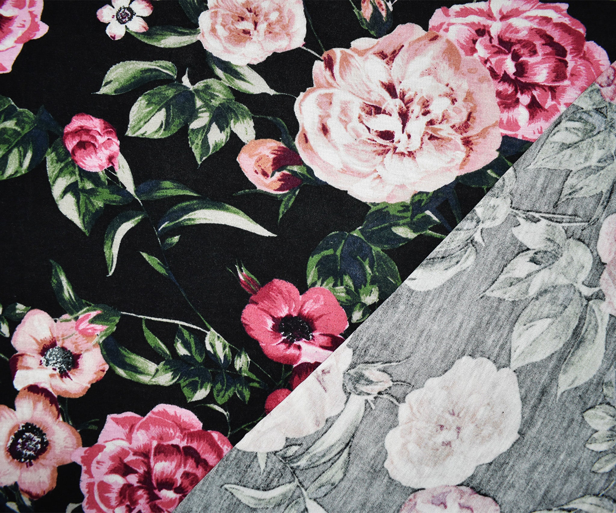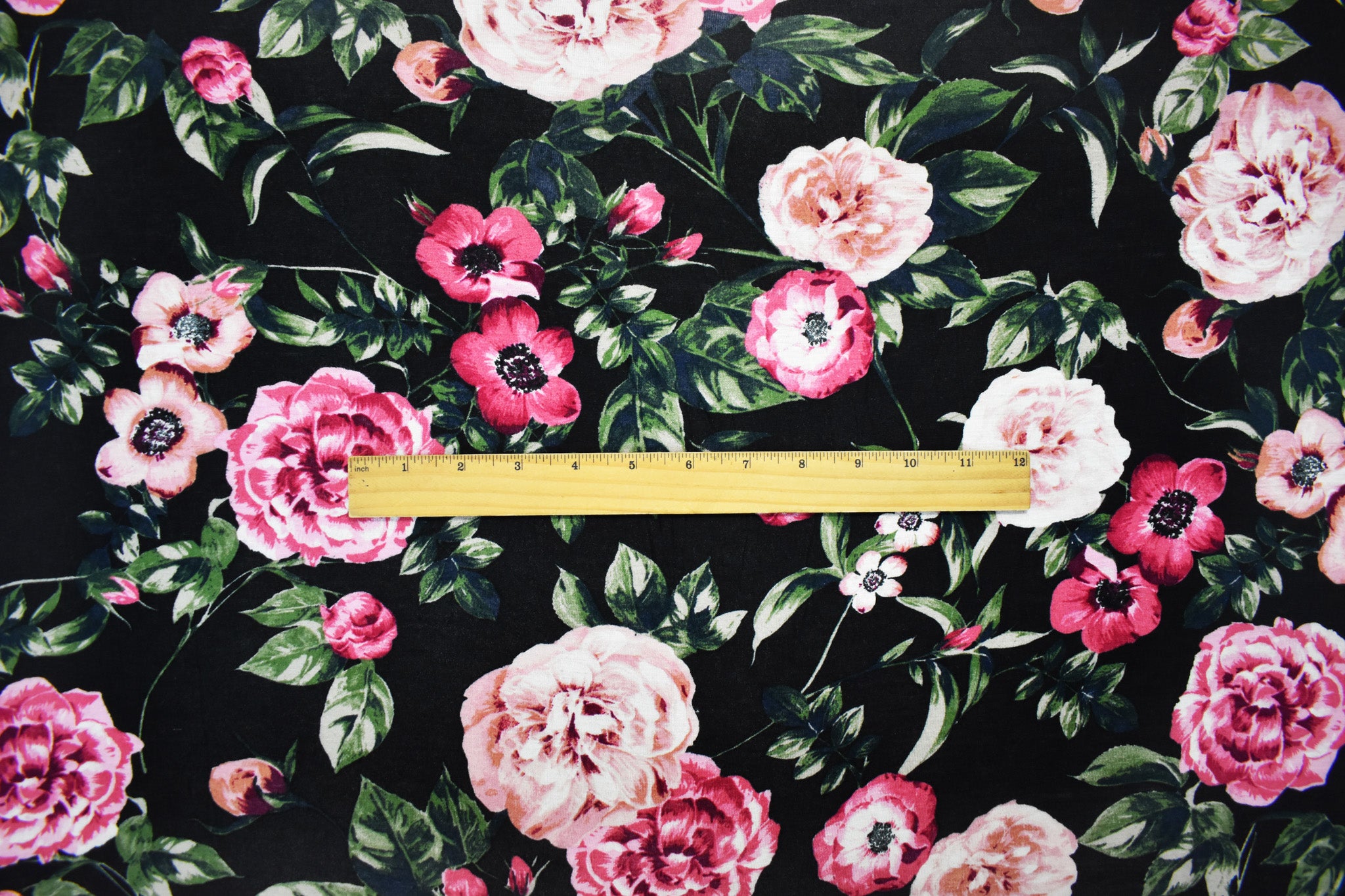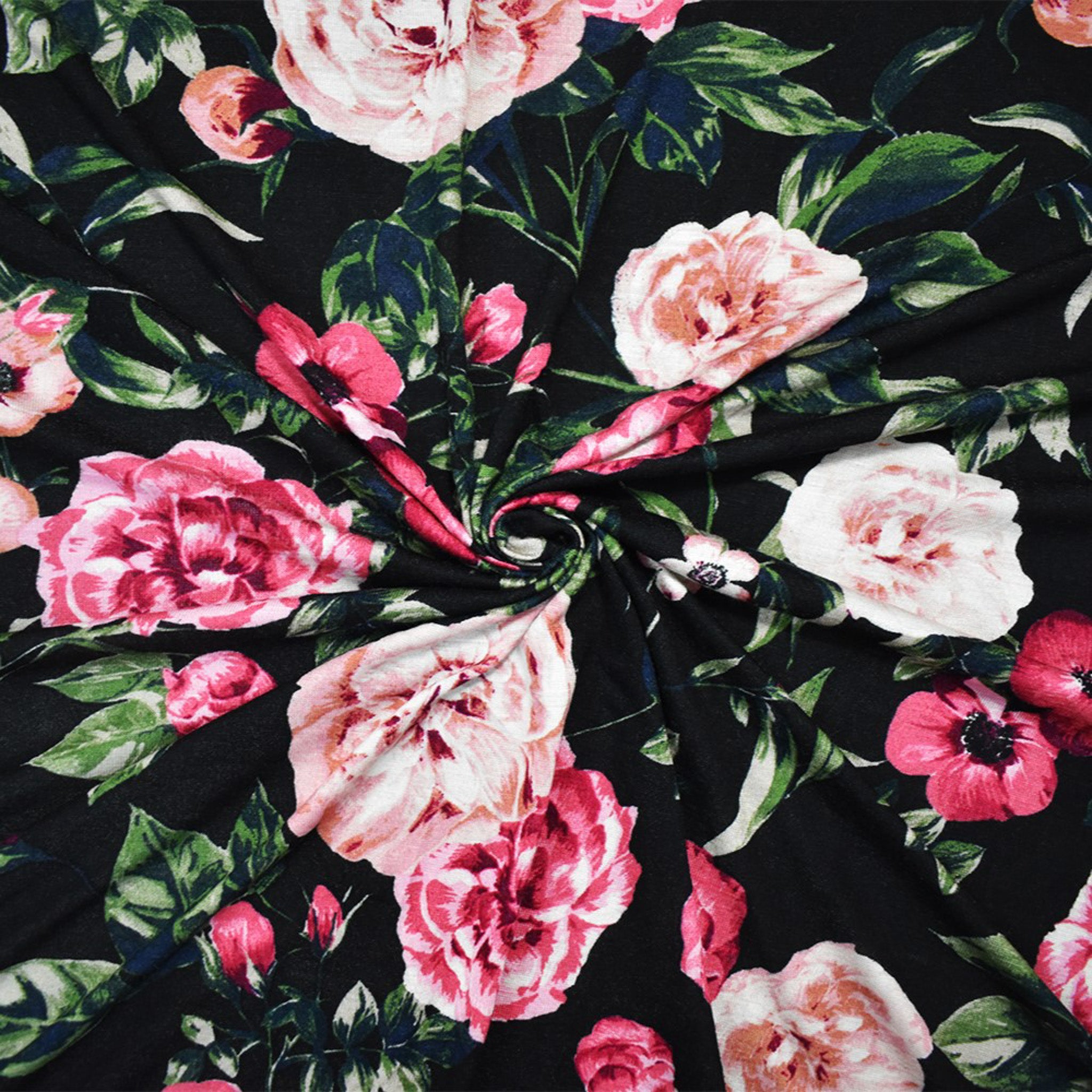 Black-Multi Rayon Stretch Spandex Floral Print Jersey Knit Fabric
