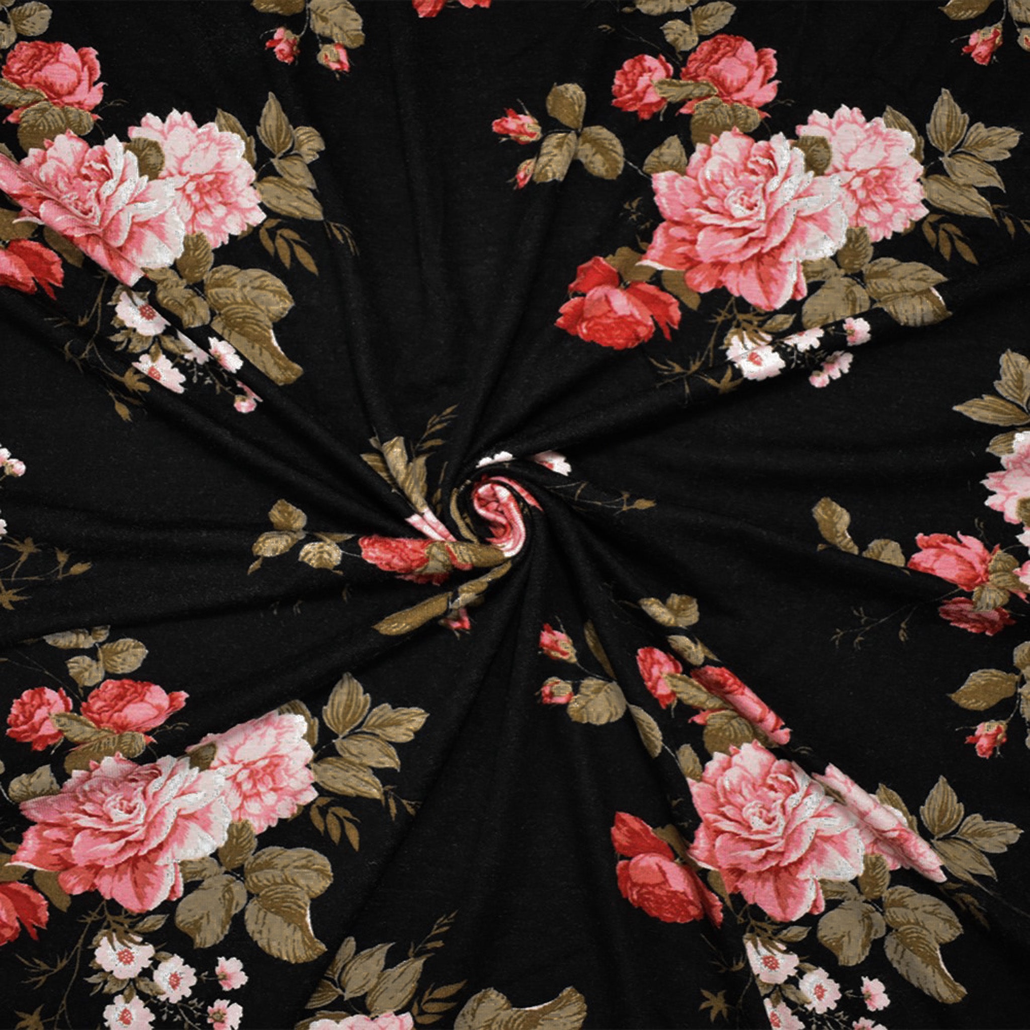 Black-Multi Rayon Stretch Spandex Floral Print Jersey Knit Fabric