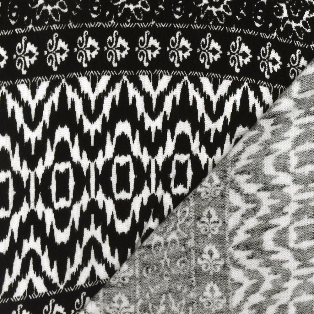Black-White Pillar And Aztec Printed Rayon Stretch Jersey Knit Fabric