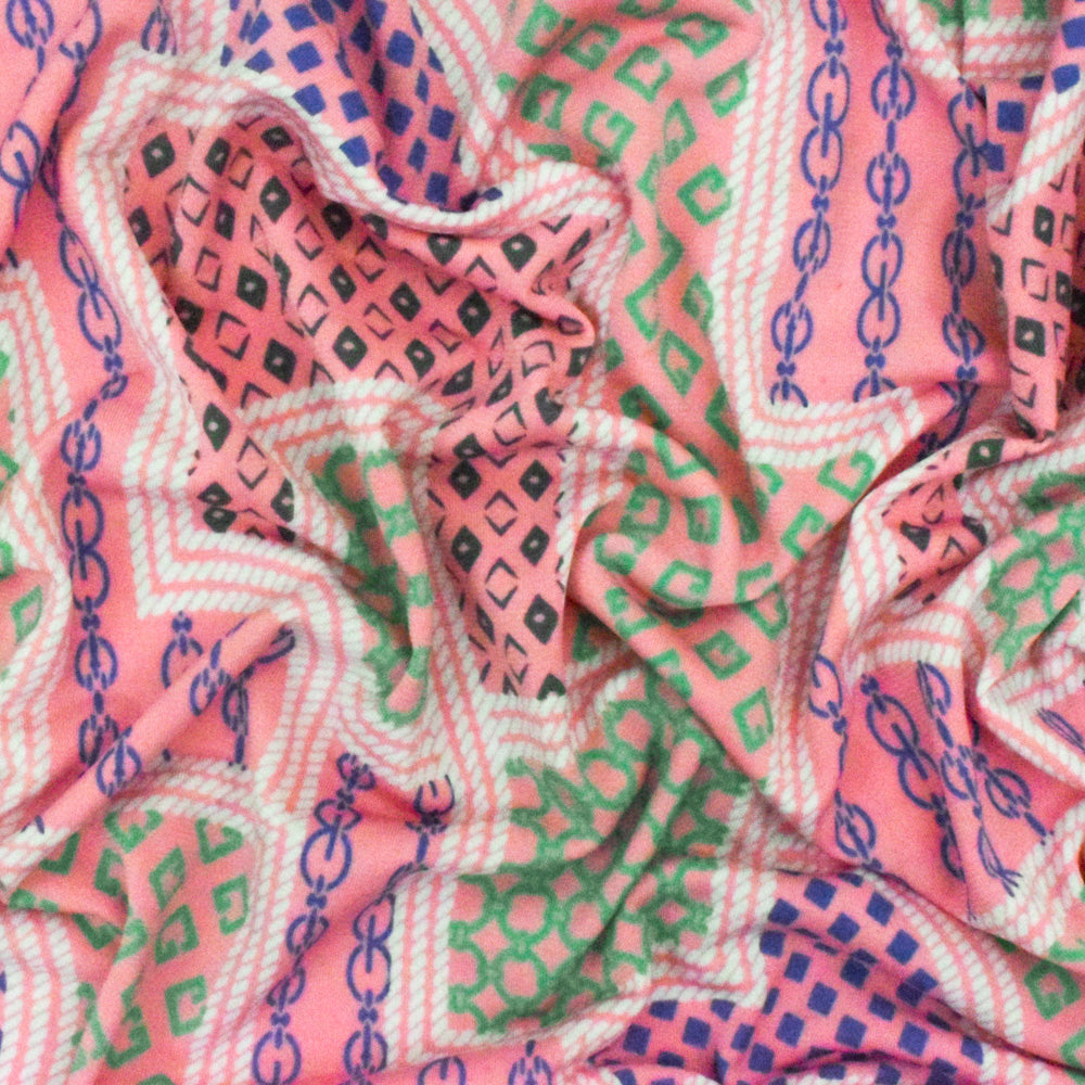 Boho Pink-White-Multi Frame Printed Stretch Polyester ITY Knit Fabric
