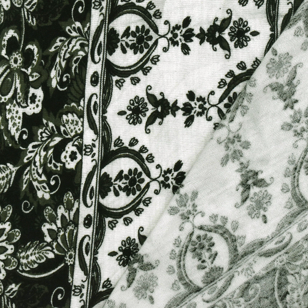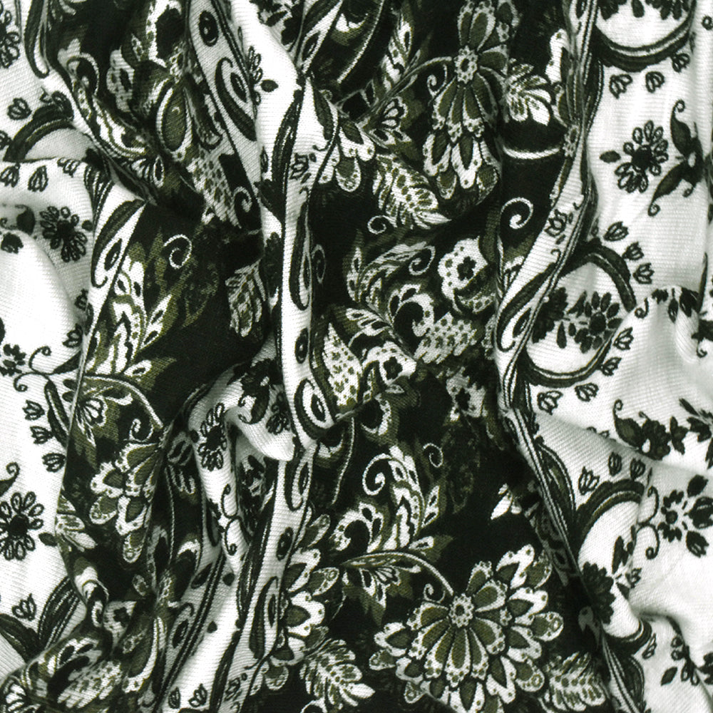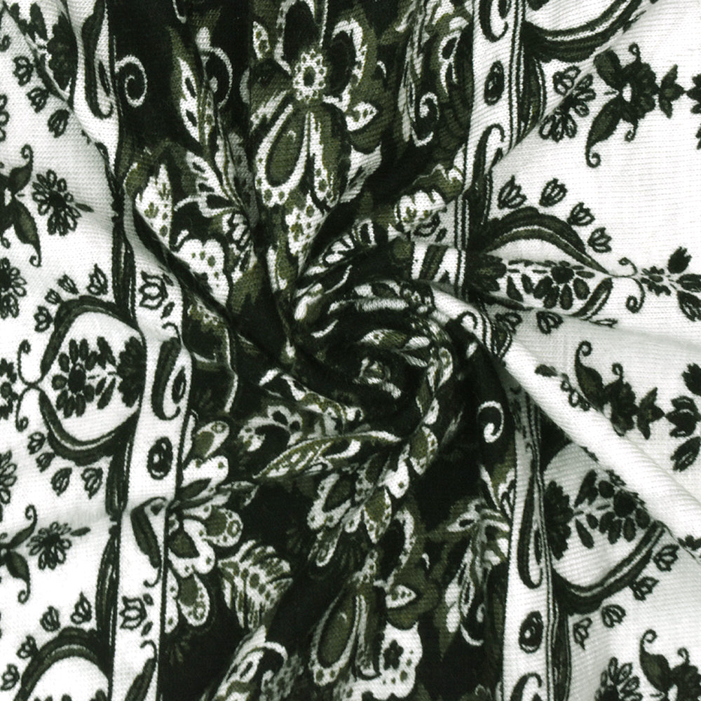 Green-Ivory-Multi Stripe Floral Print Rayon Stretch Slub Jersey Knit Fabric