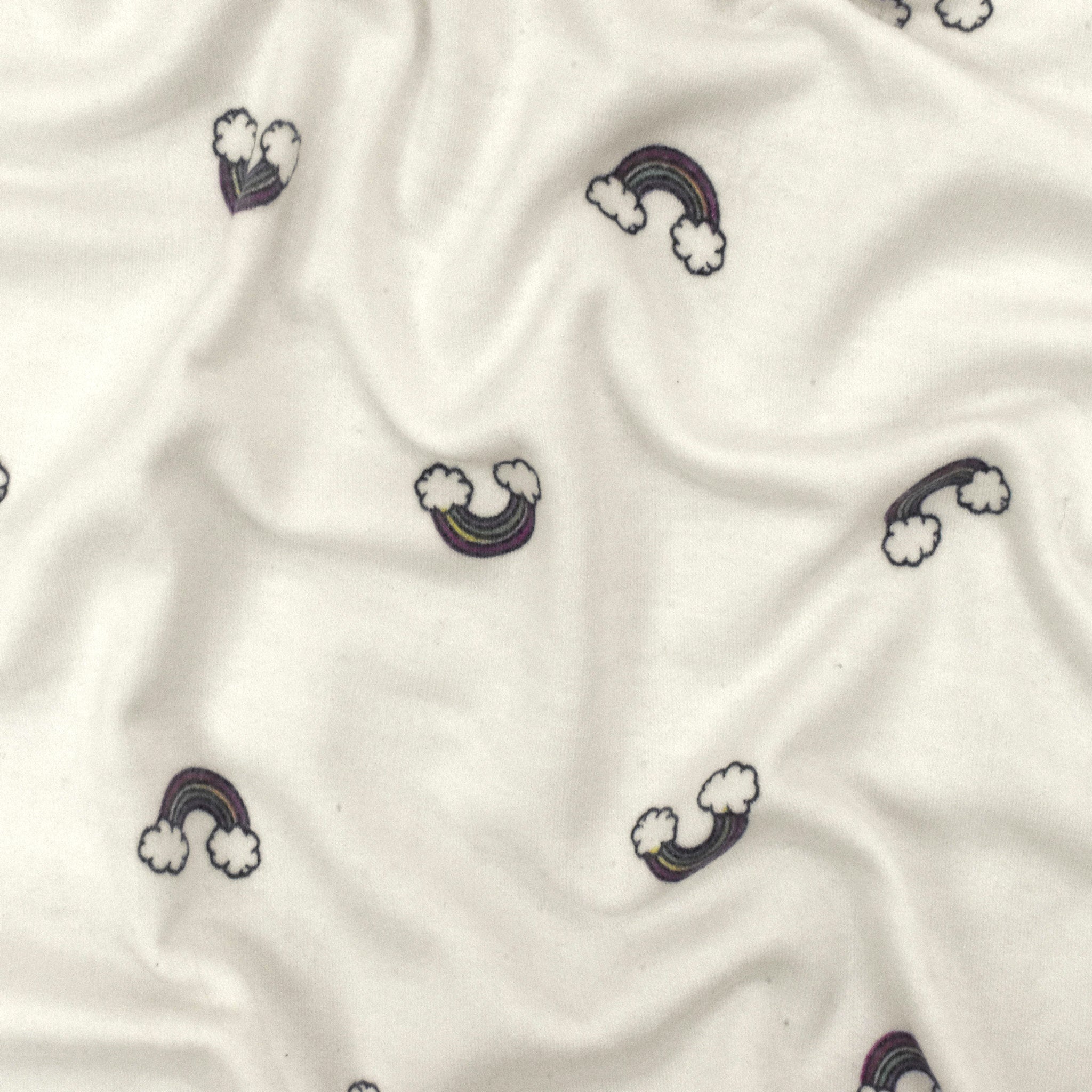 Ivory-Multi Cartoon Rainbow Printed Stretch Baby French Terry Knit Fabric
