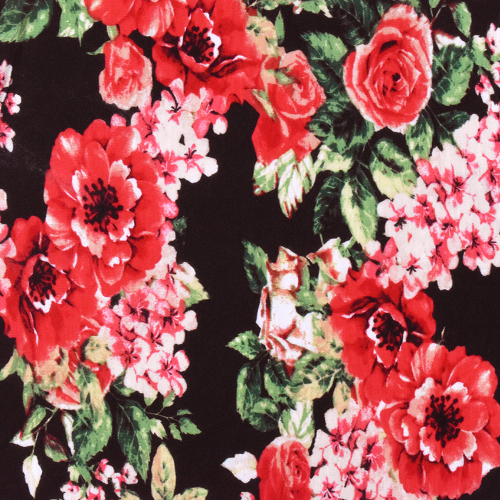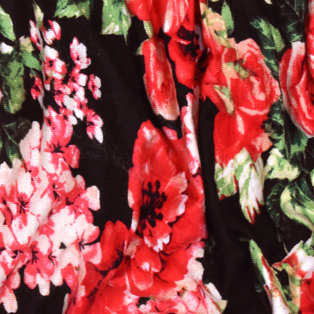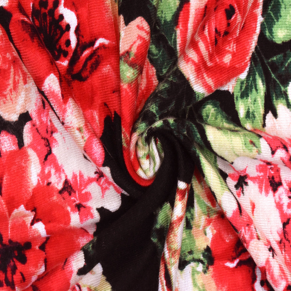 Red-Green-Multi Floral Printed Rayon Stretch Jersey Knit Fabric