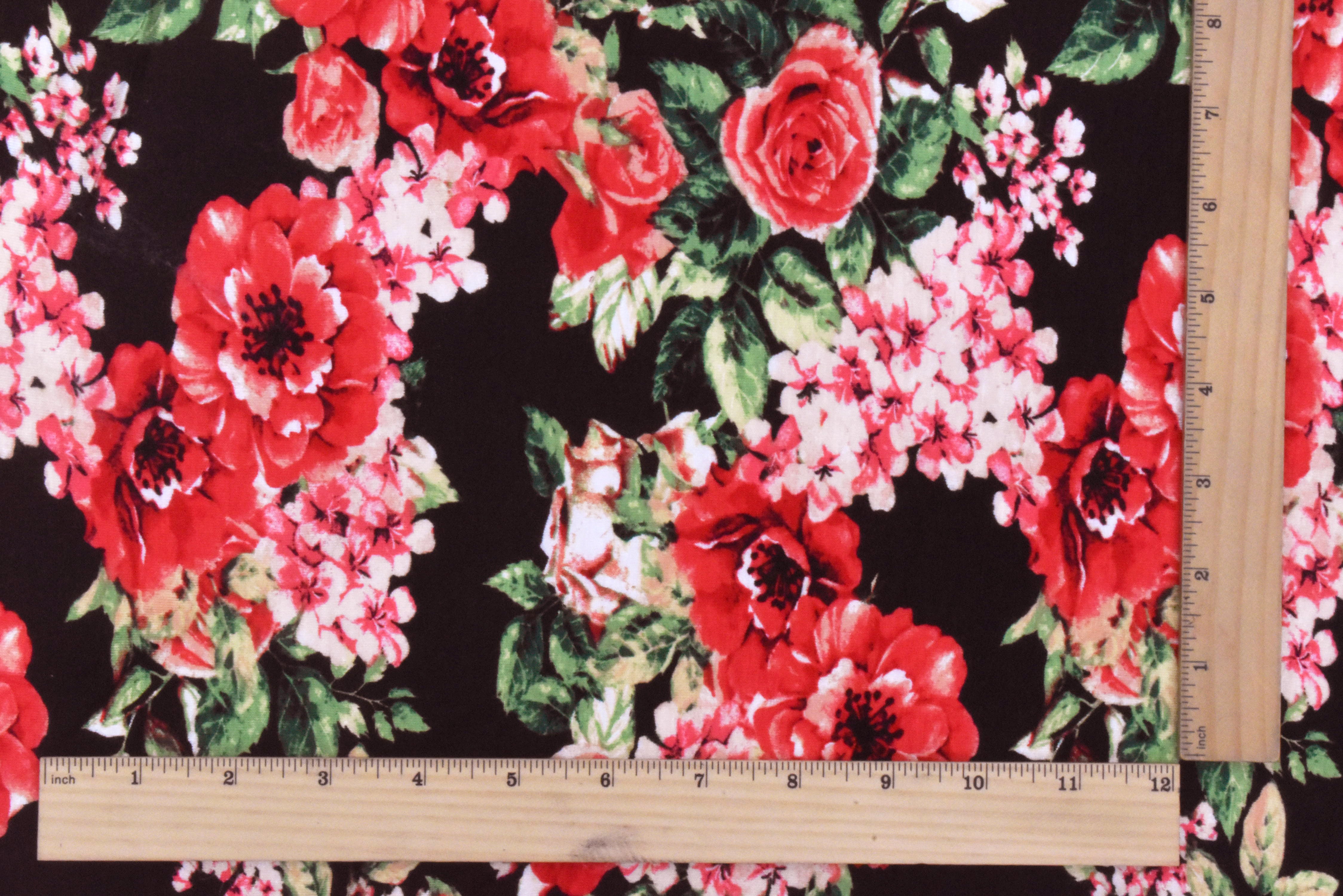 -Rayon jersey knit fabric printed with a floral pattern