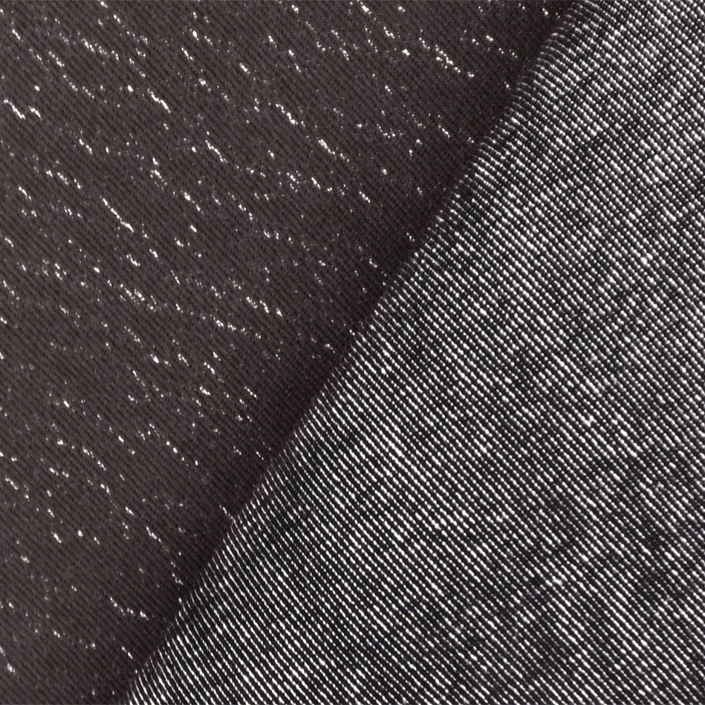 -9 oz. stretch denim fabric overprinted with a crackle-like pattern on the face