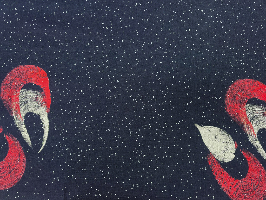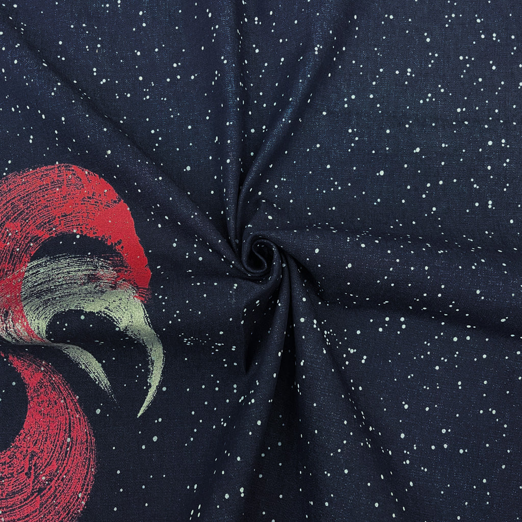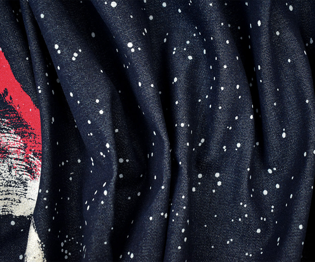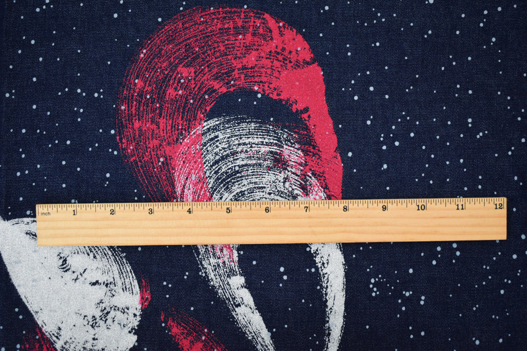 Navy-Multi Abstract Paint Dot Print 8 oz. Stretch Spandex Denim Fabric