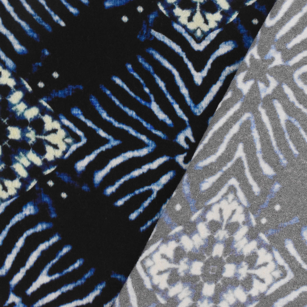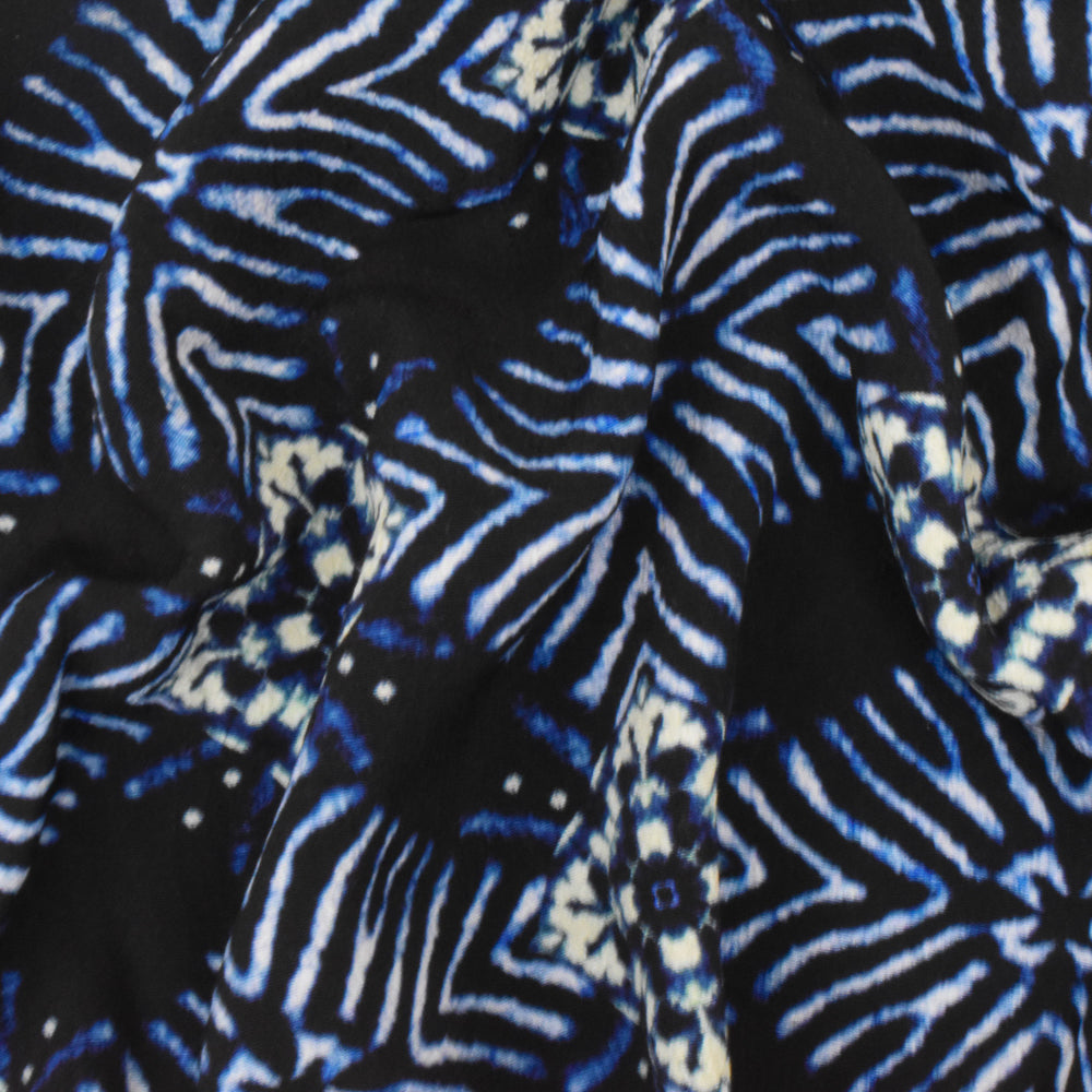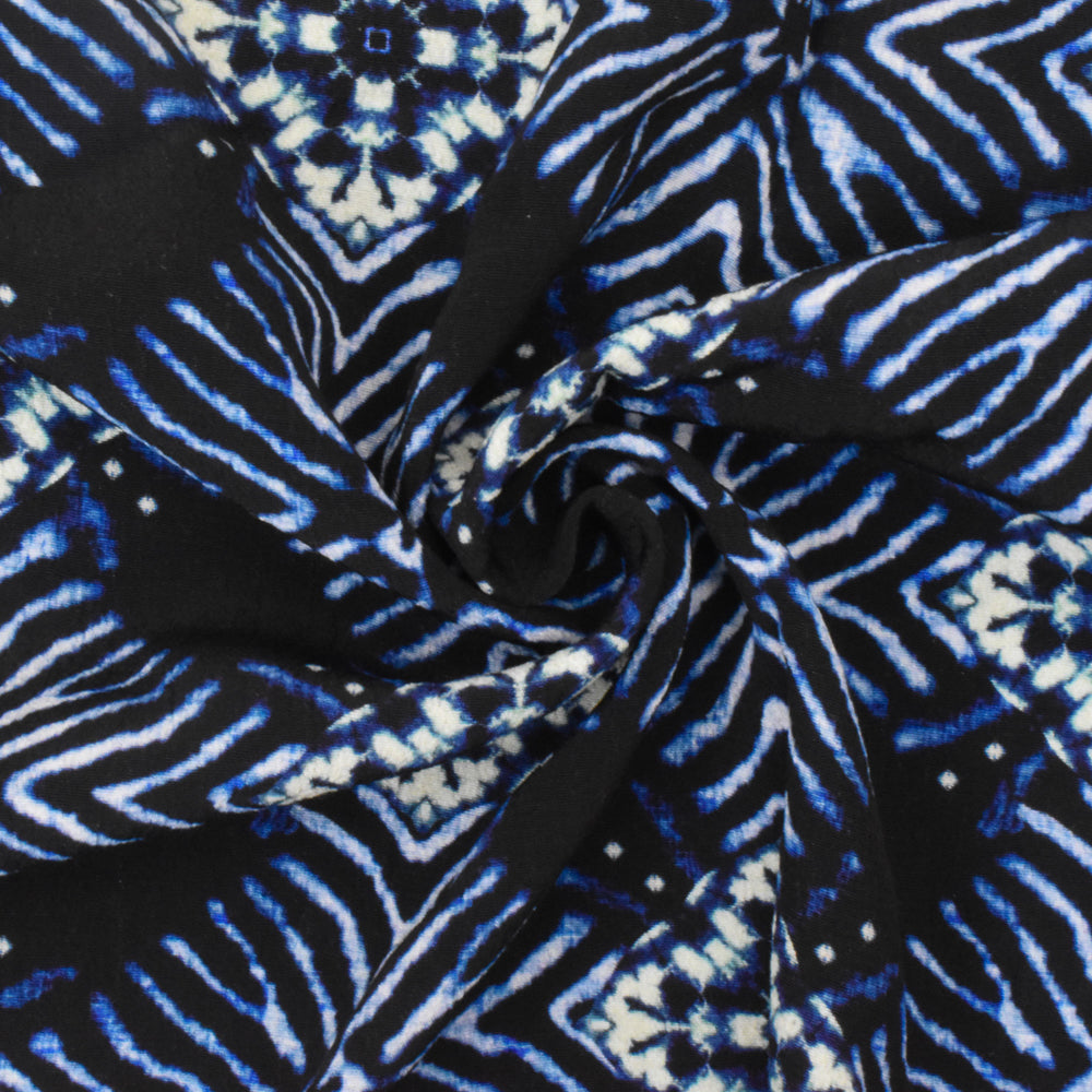 Black-Blue-Multi Famous Designer Diamond Print Viscose Crepe Faille Fabric