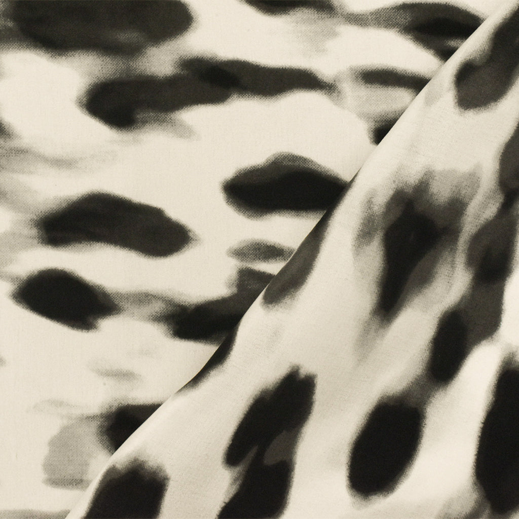 Black-Gray-White Famous Designer Silk Animal Printed Crepe De Chine Fabric