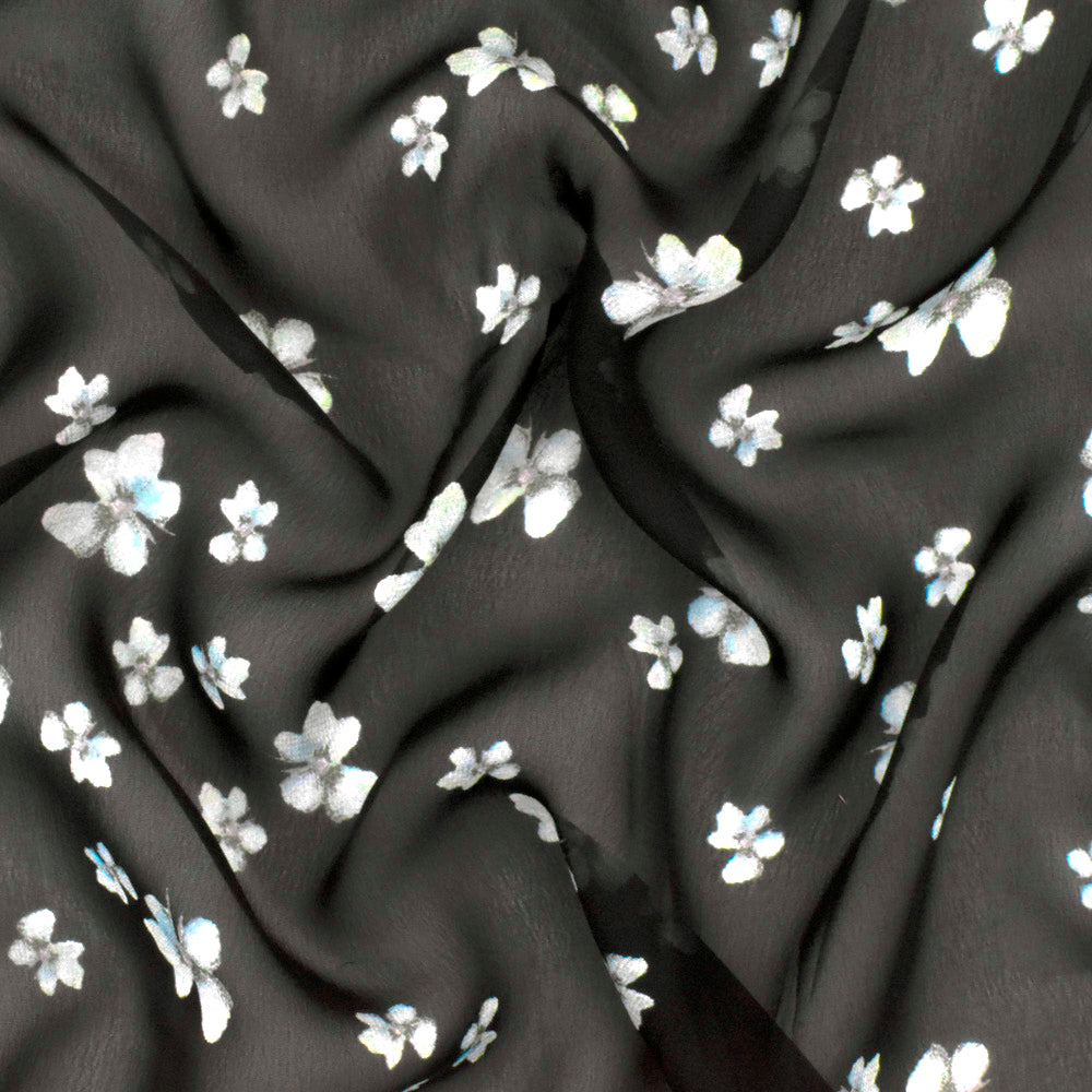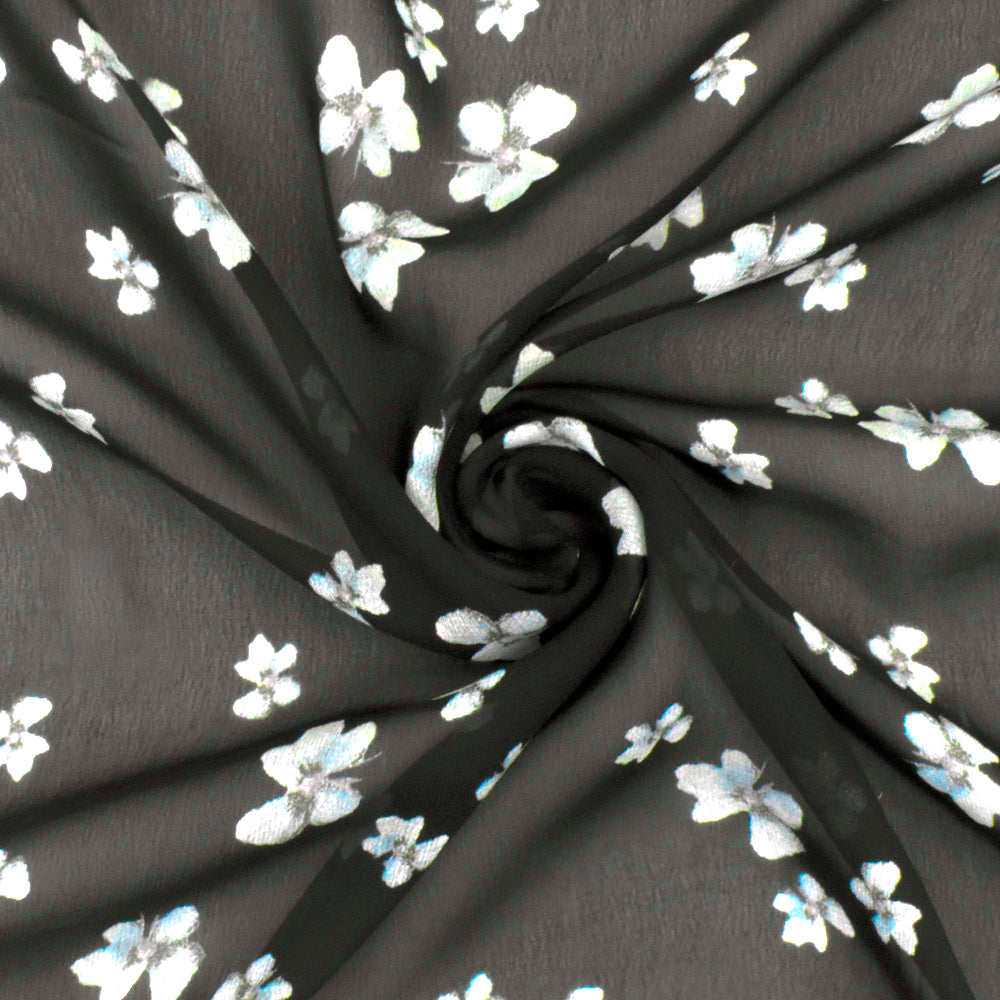 Black-Teal-Multi Famous Designer Floral Print Viscose Chiffon Woven Fabric
