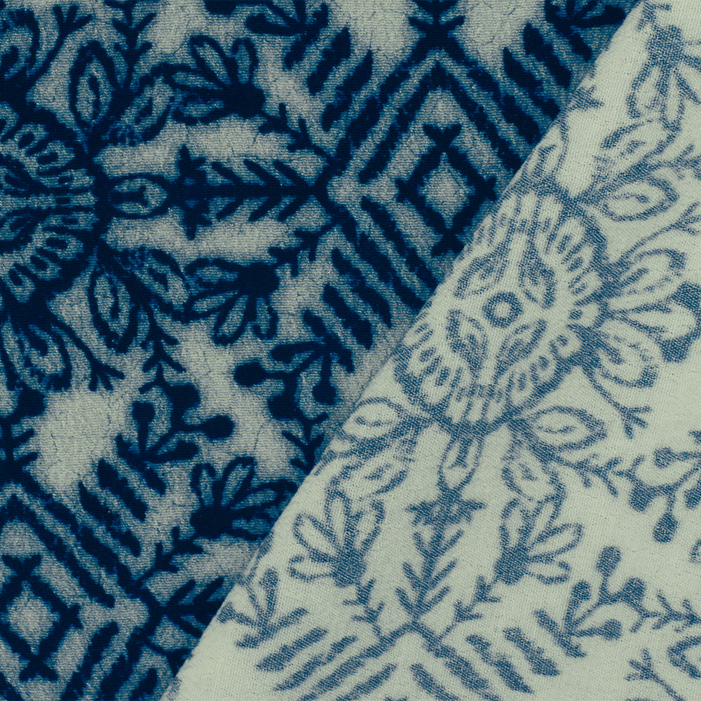 Blue-Gray Famous Designer Viscose Stamped Batik Printed Crepe Faille Fabric