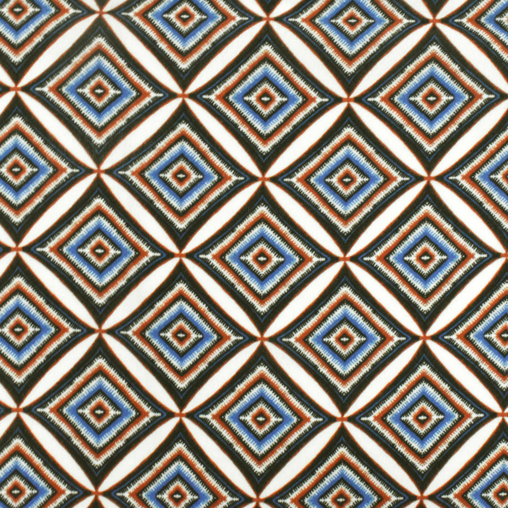 Blue-Multi Famous Designer Diamond-Tile Print Viscose Crepe Faille Fabric