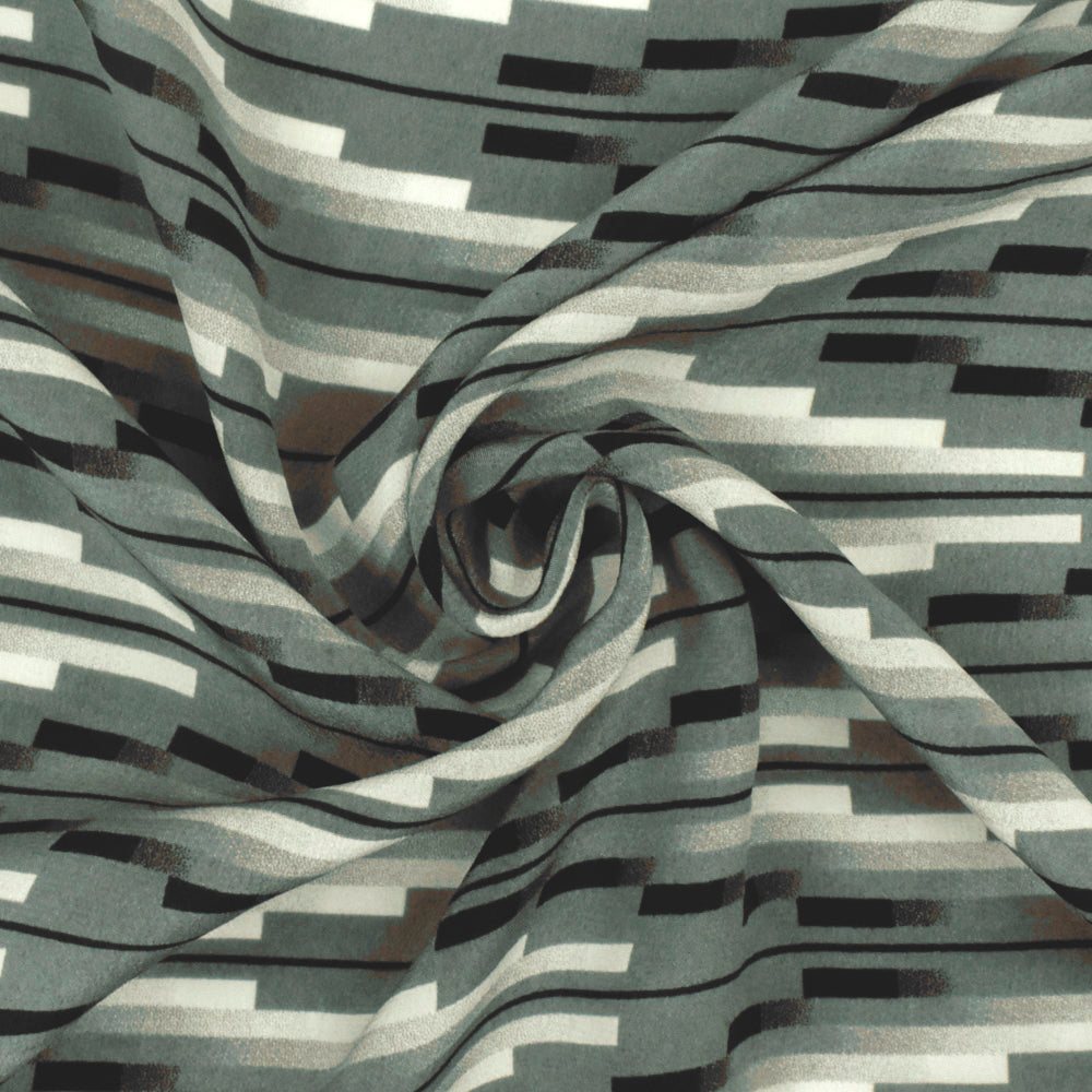 Gray-Multi Famous Designer Pixel Chevron Printed Silk Crepe De Chine Fabric