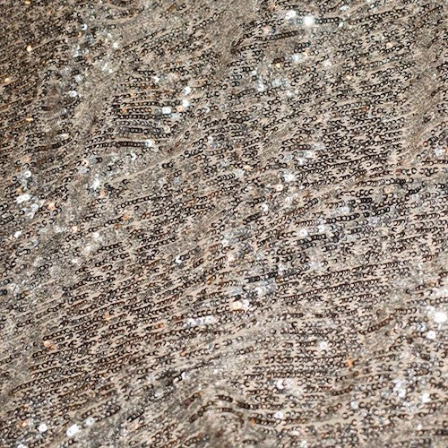 Metallic Silver/Beige Famous Designer Sequined Mesh Fabric