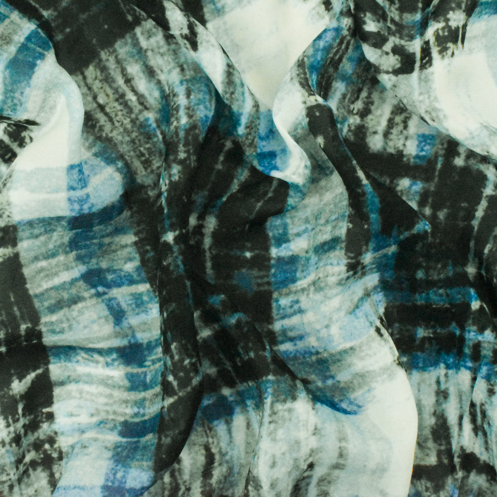 -Famous designer, 100% viscose tie dye plaid-like pattern printed on a chiffon woven fabric, made in Italy