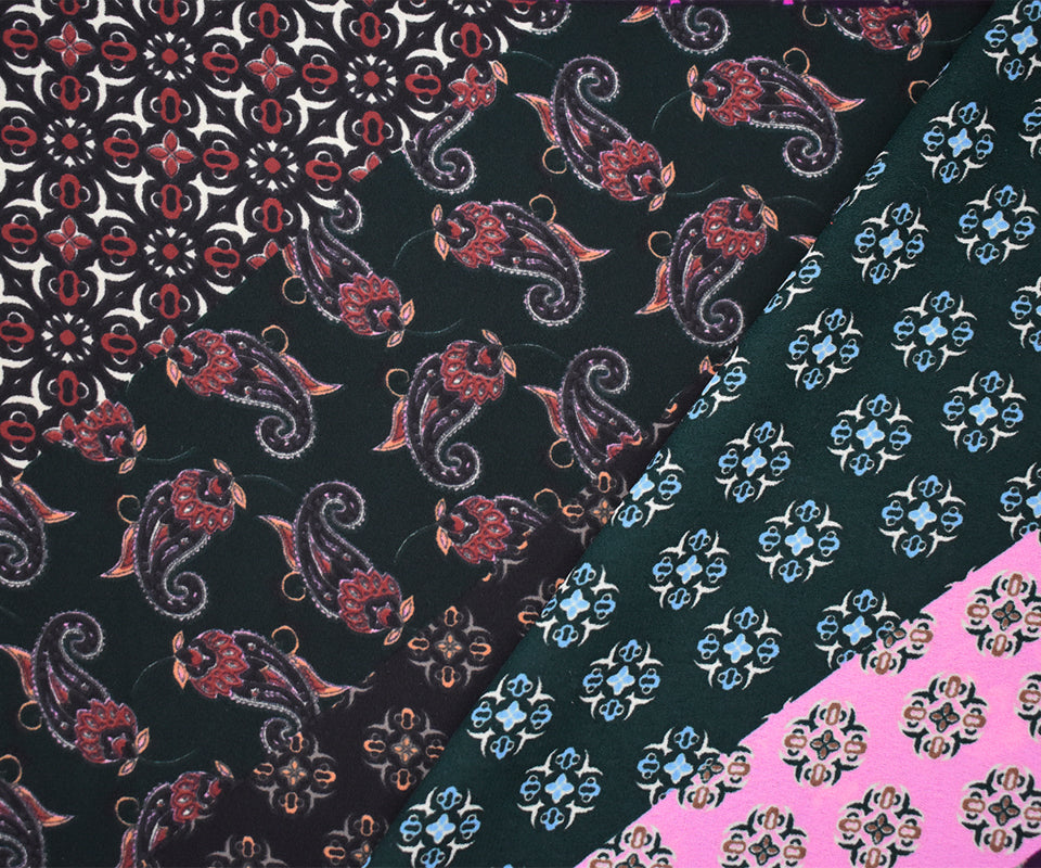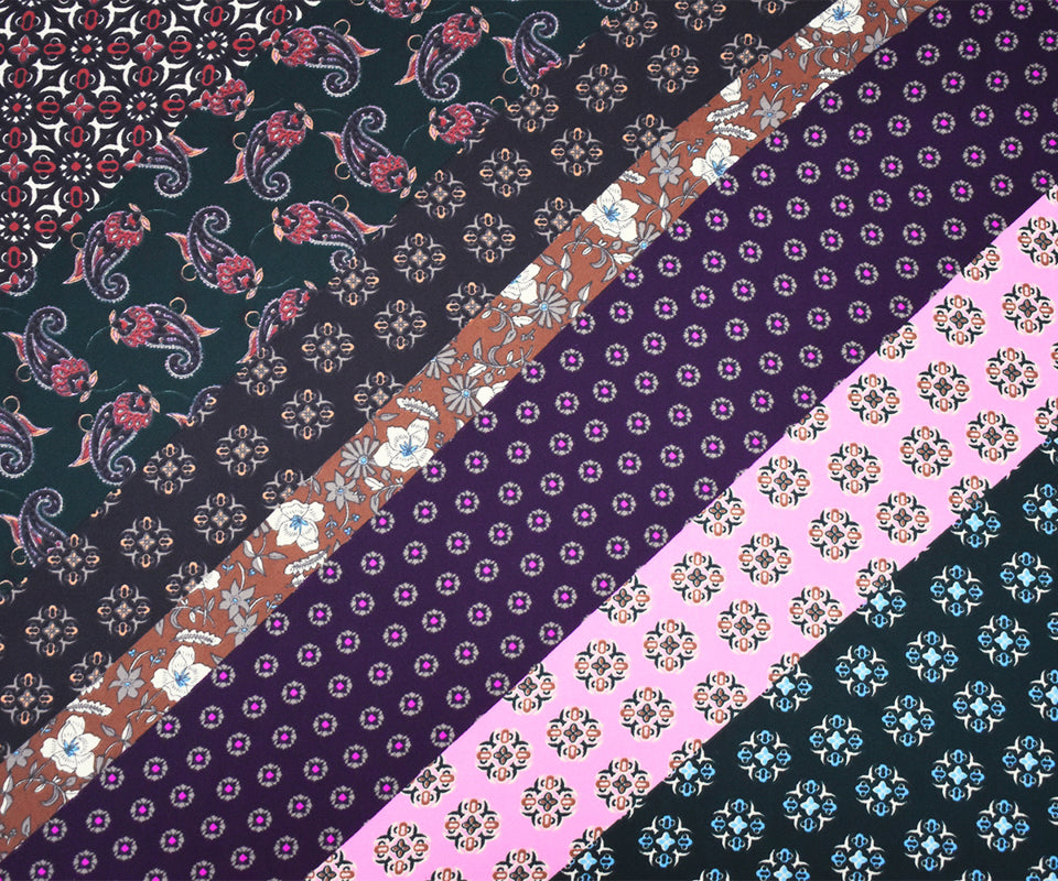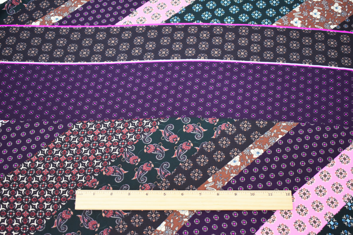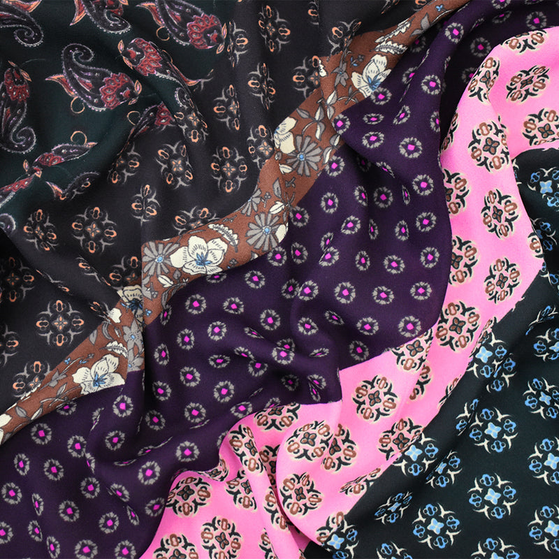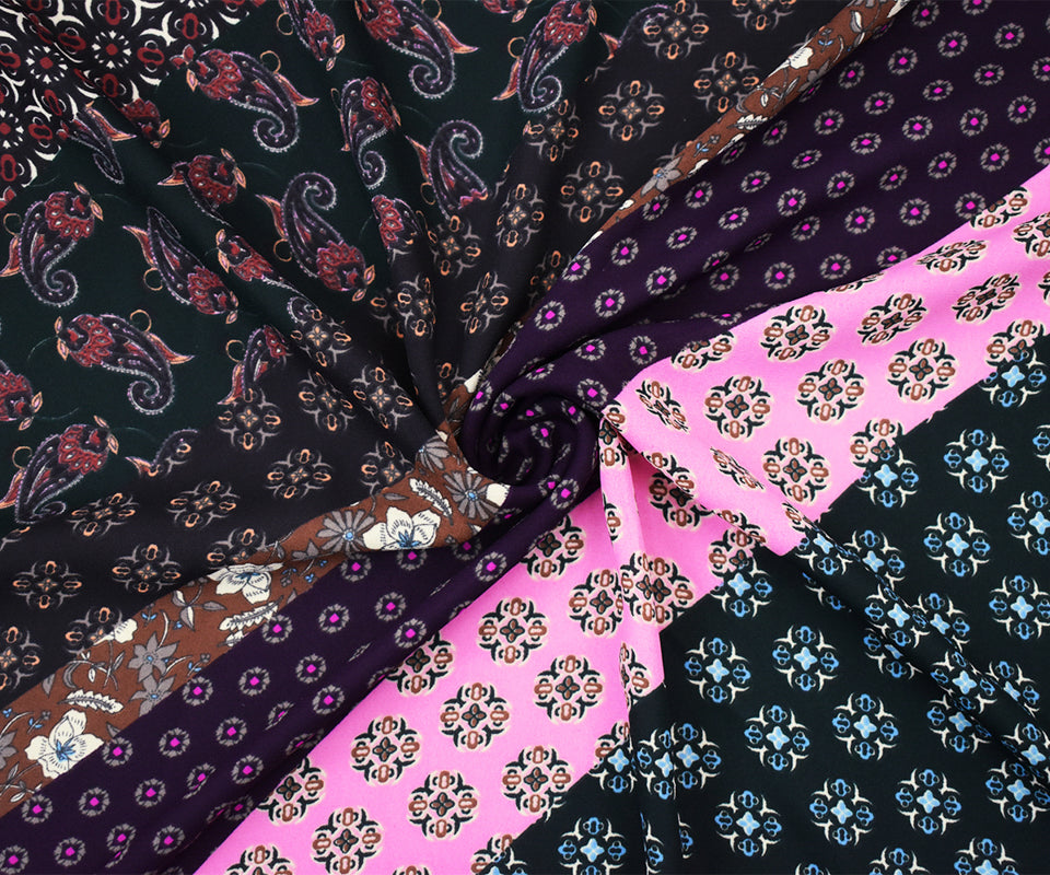 -Famous designer polyester georgette momie woven fabric printed with a multi patterned panels