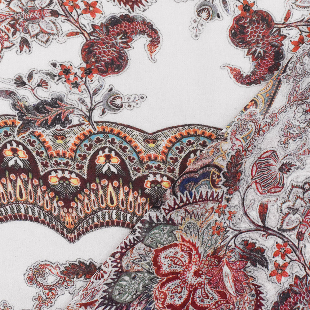 -100% viscose famous designer chiffon fabric printed with paisley and bordered inspired elements