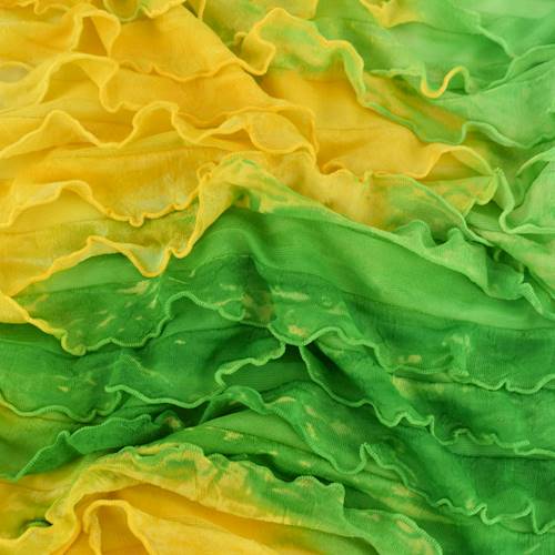 1 YD PC-Yellow/Green Tie Dye Ruffle Knit Fabric