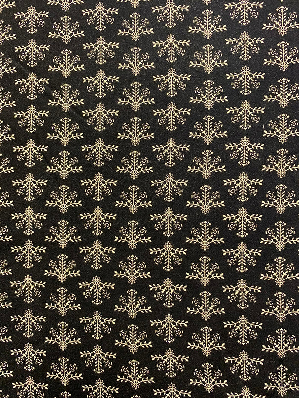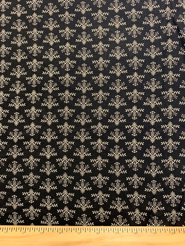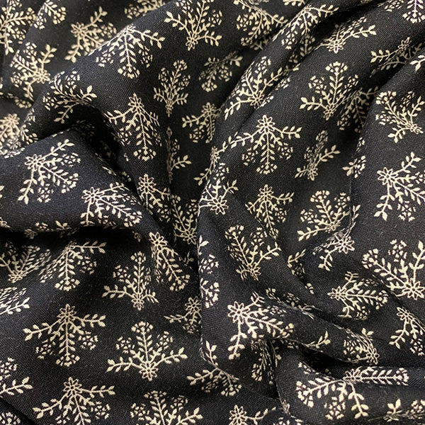 2 1/2 YD PC -Black and Ivory Sprig Print Rayon Challis Fabric