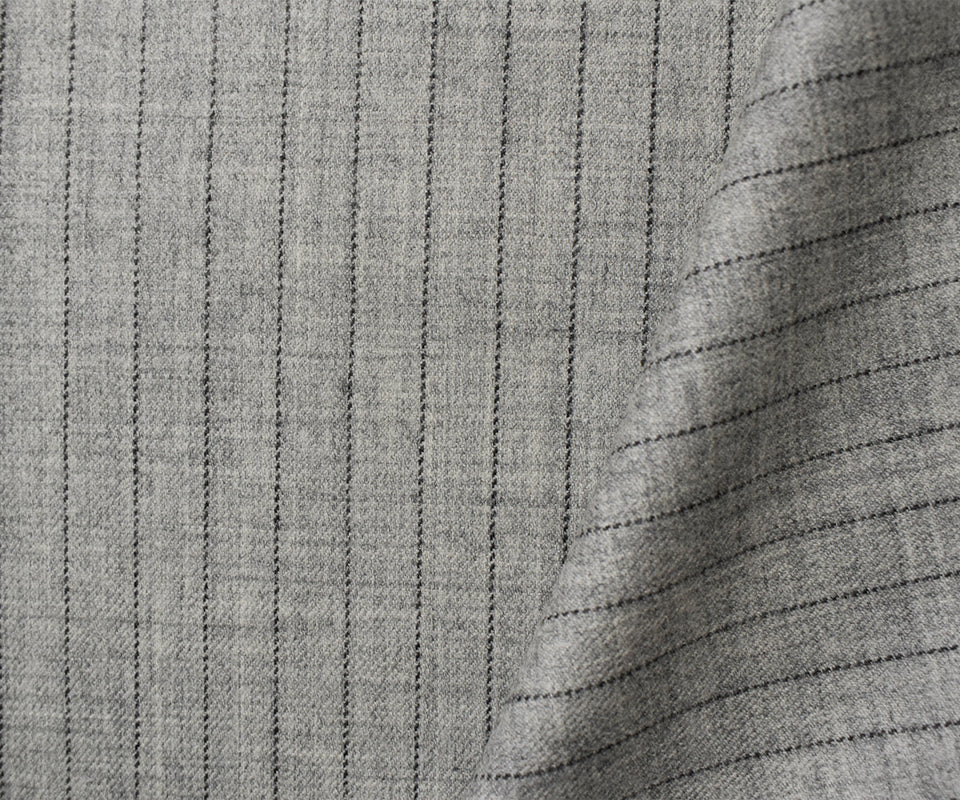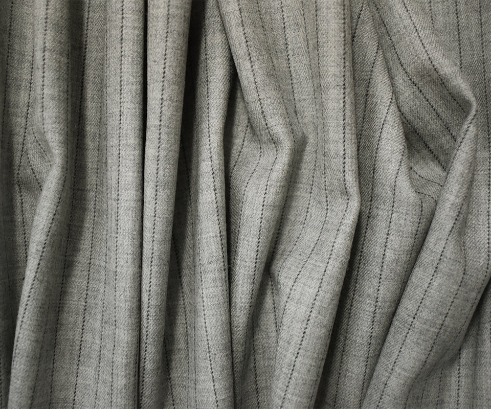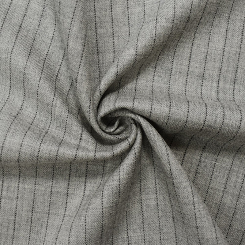 9 YD PC-Gray-Black Wool Poly Stripe Twill Woven Suiting Fabric