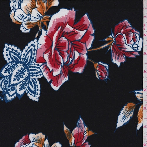 2 YD PC-Black/Gold Stylized Floral Double Brushed Jersey Knit Fabric