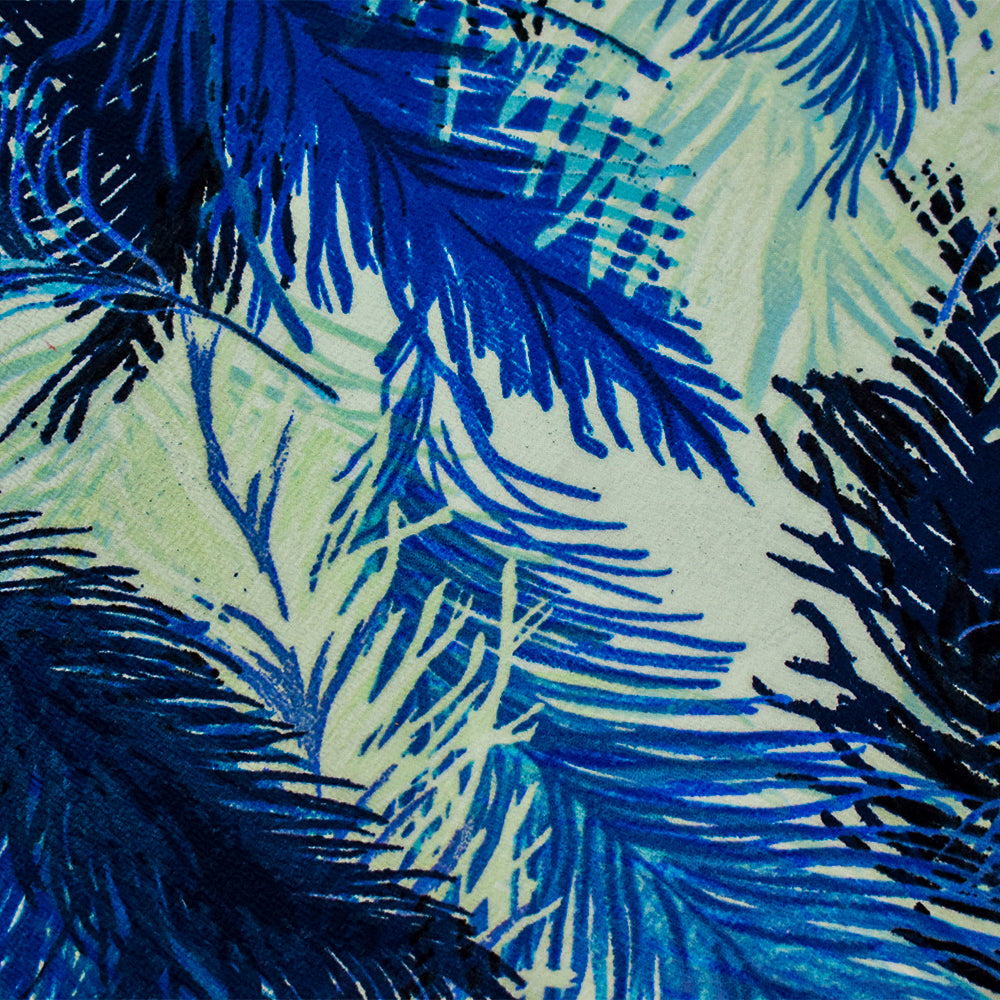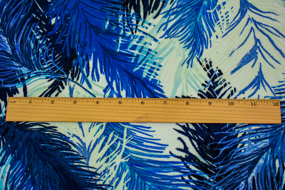 4 YD PC -Blue-Multi Nylon Poly Stretch Spandex Leaves Printed Crepe Double Knit Fabric