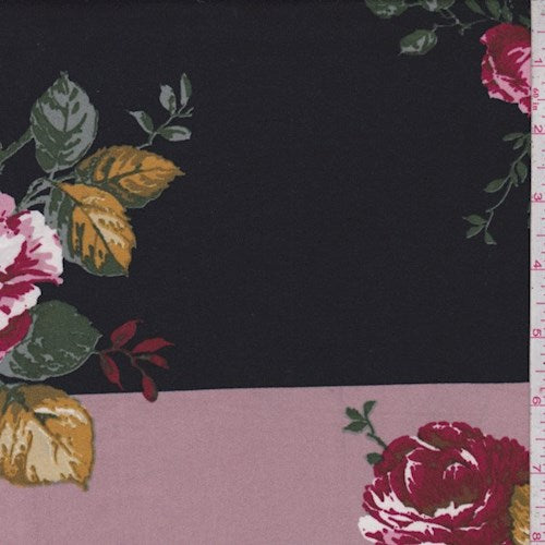 Black/Pink/Berry Stripe/Floral Double Brushed Jersey Knit Fabric