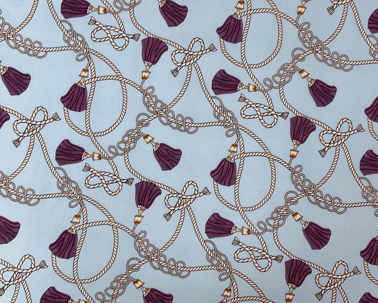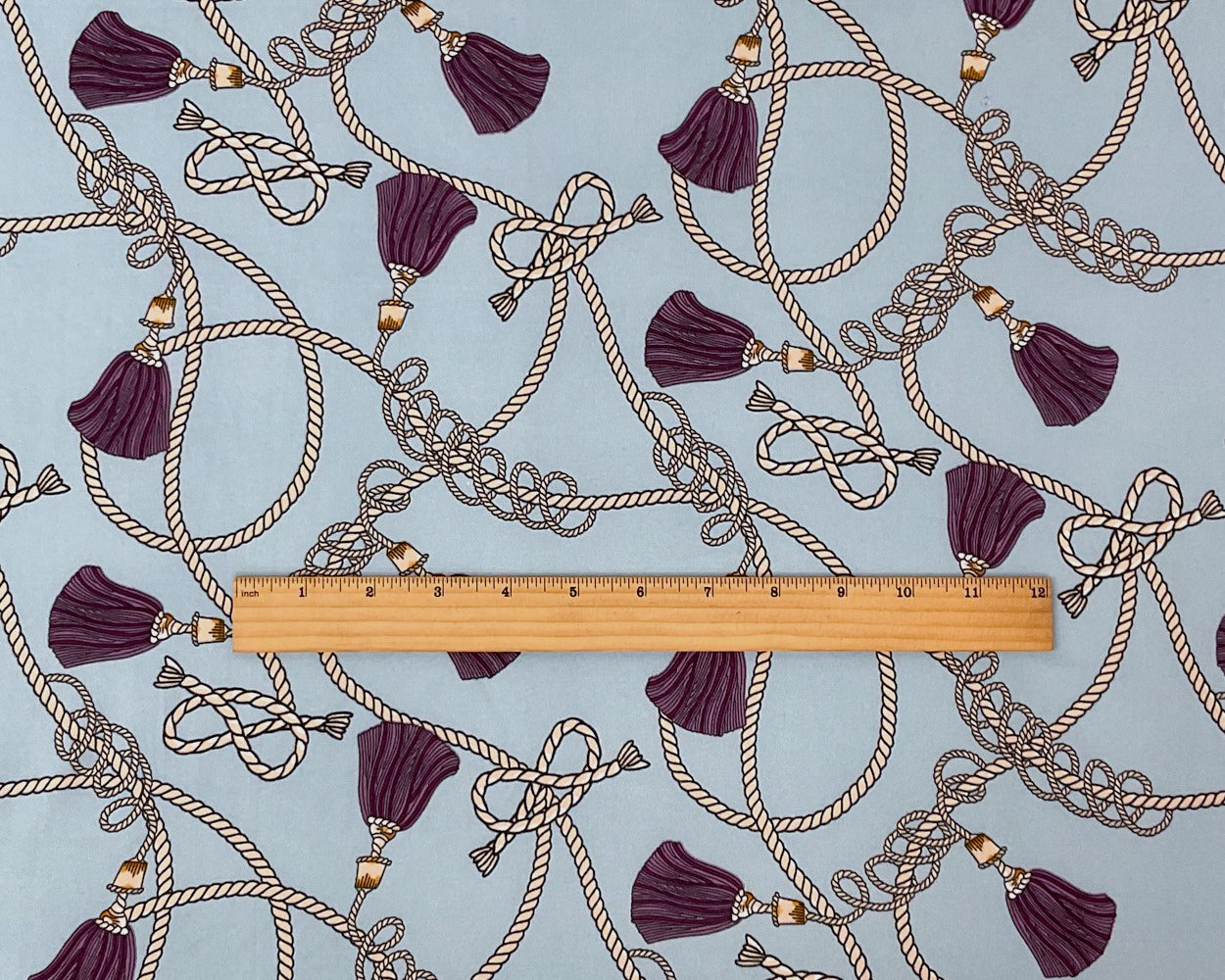 Blue-Multi Poly Spandex Stretch Rope Tassel Print DB Jersey Knit Fabric