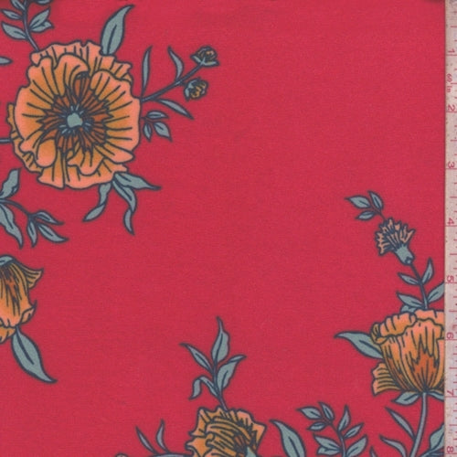 Bright Red Cosmo Floral Double Brushed Jersey Knit Fabric