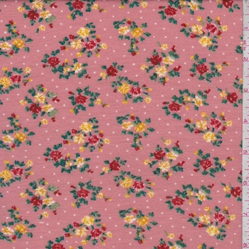 Dark Blush Mini Floral Pindot Brushed French Terry Knit Fabric